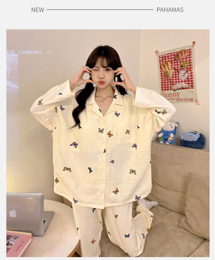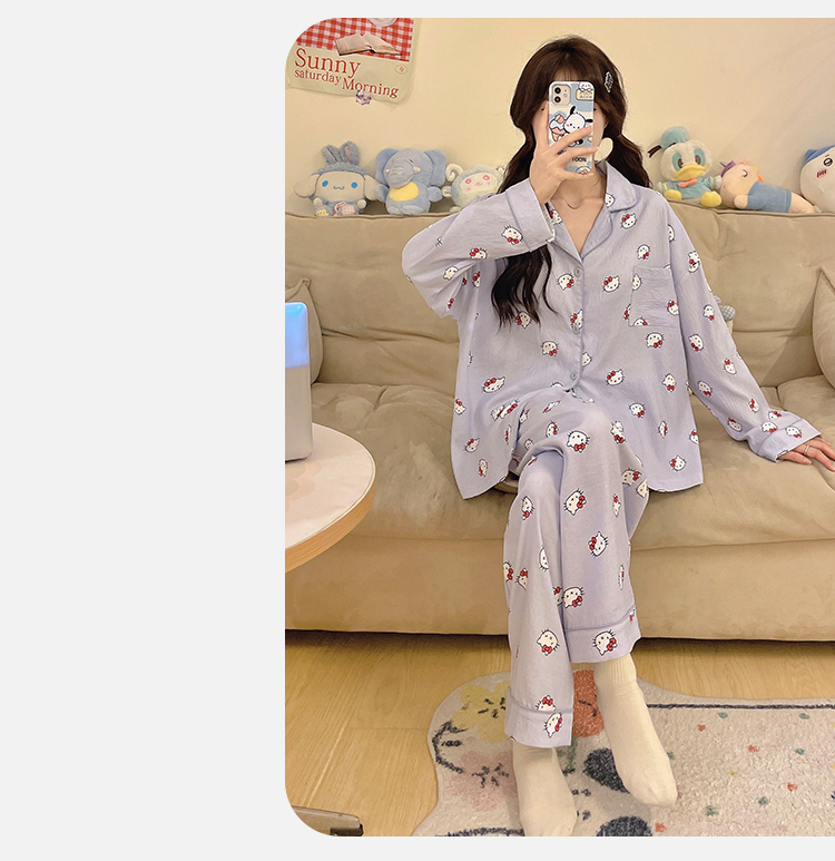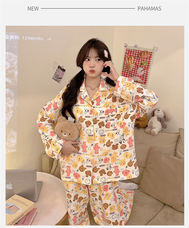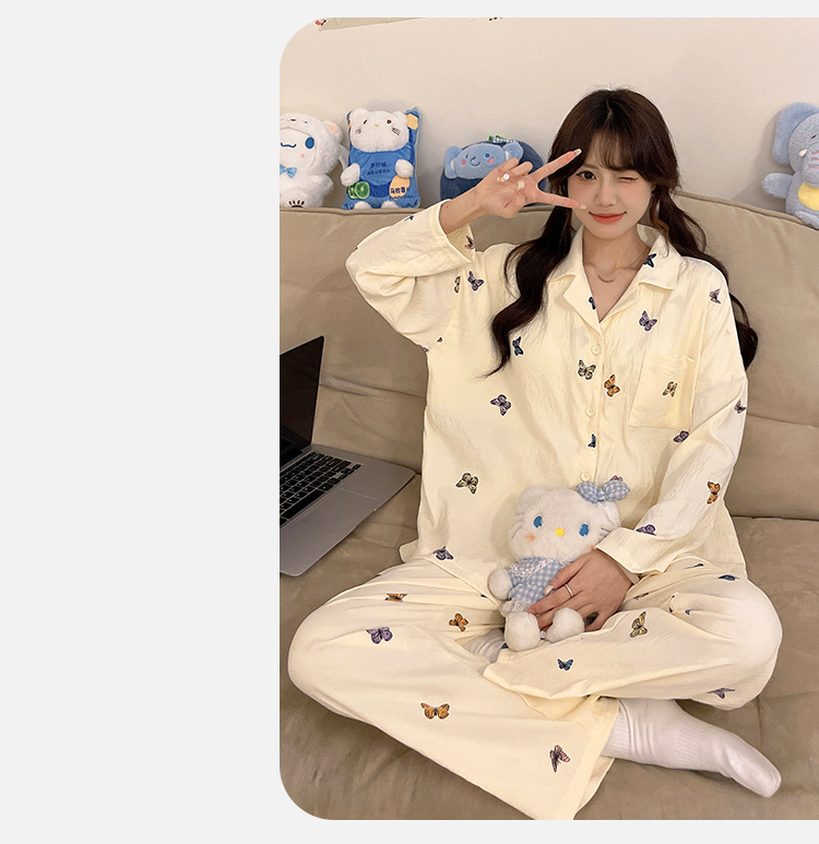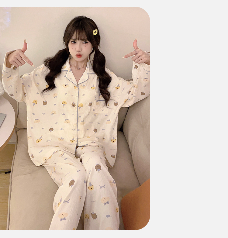 【GZ】无忧购可爱卡通云朵棉开衫家居服套装带胸垫 商品图11