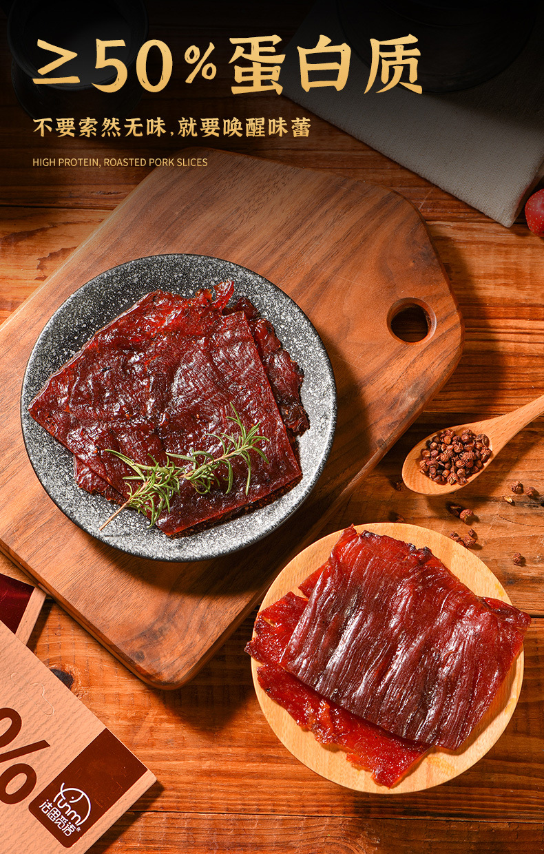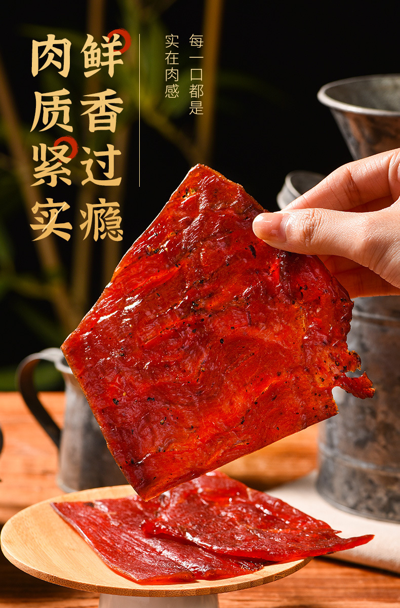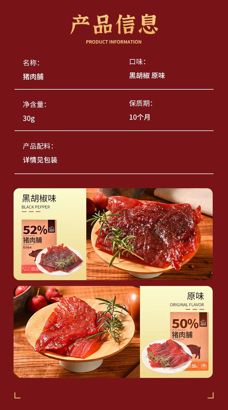 【经典好味法思觅语猪肉脯】2款口味原味胡椒猪肉脯,肉质紧实入口香醇不腻越嚼越香,独立包装休闲零食即食片装QQ