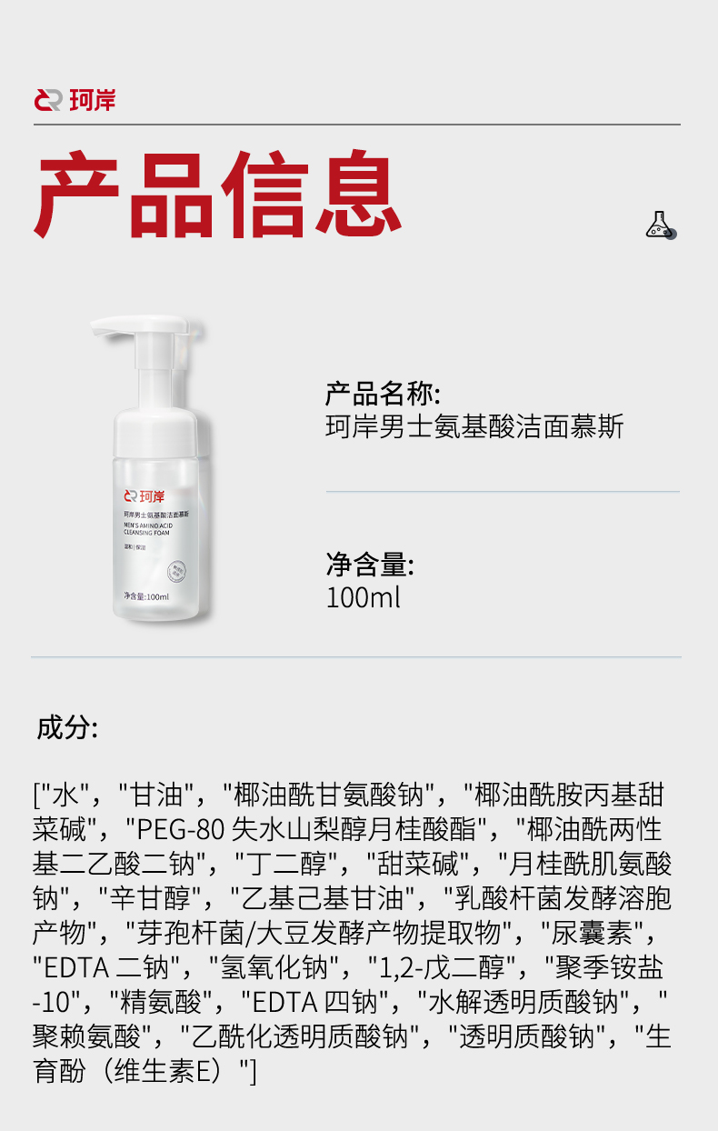 【华熙直营】珂岸氨基酸净透洁面慕斯100ml