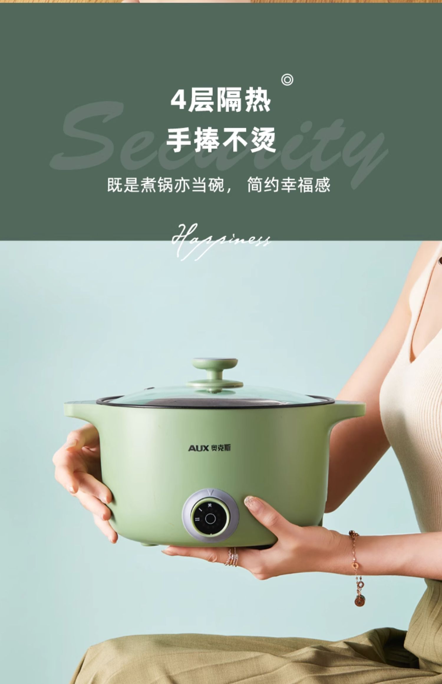 Z1314 奥克斯电煮锅 绿色不粘锅款【无蒸笼】
