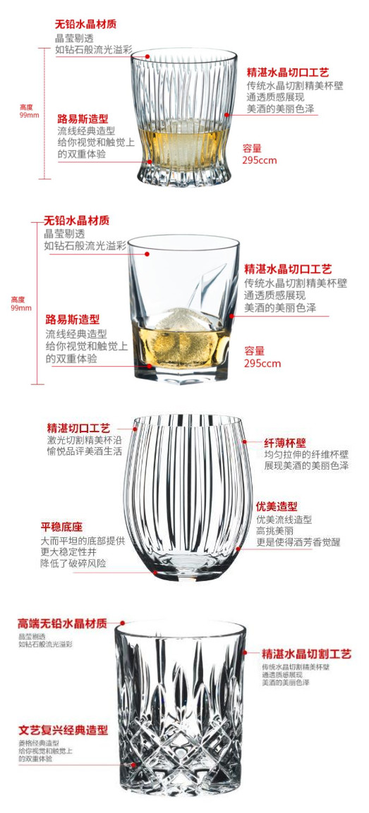 醴铎Riedel无杆葡萄酒杯/威士忌杯(2只装)