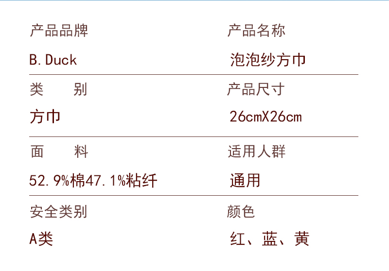 B.Duck小黄鸭泡泡纱可爱鸭小方巾26*26cm 092