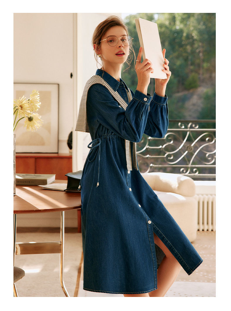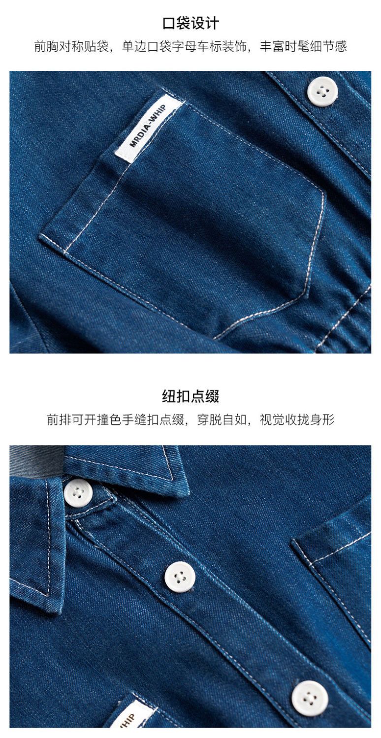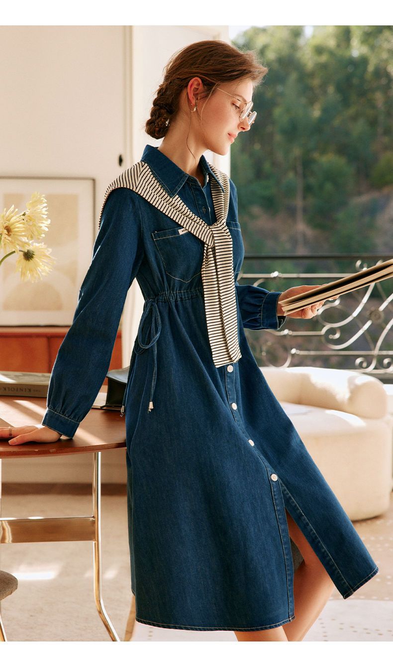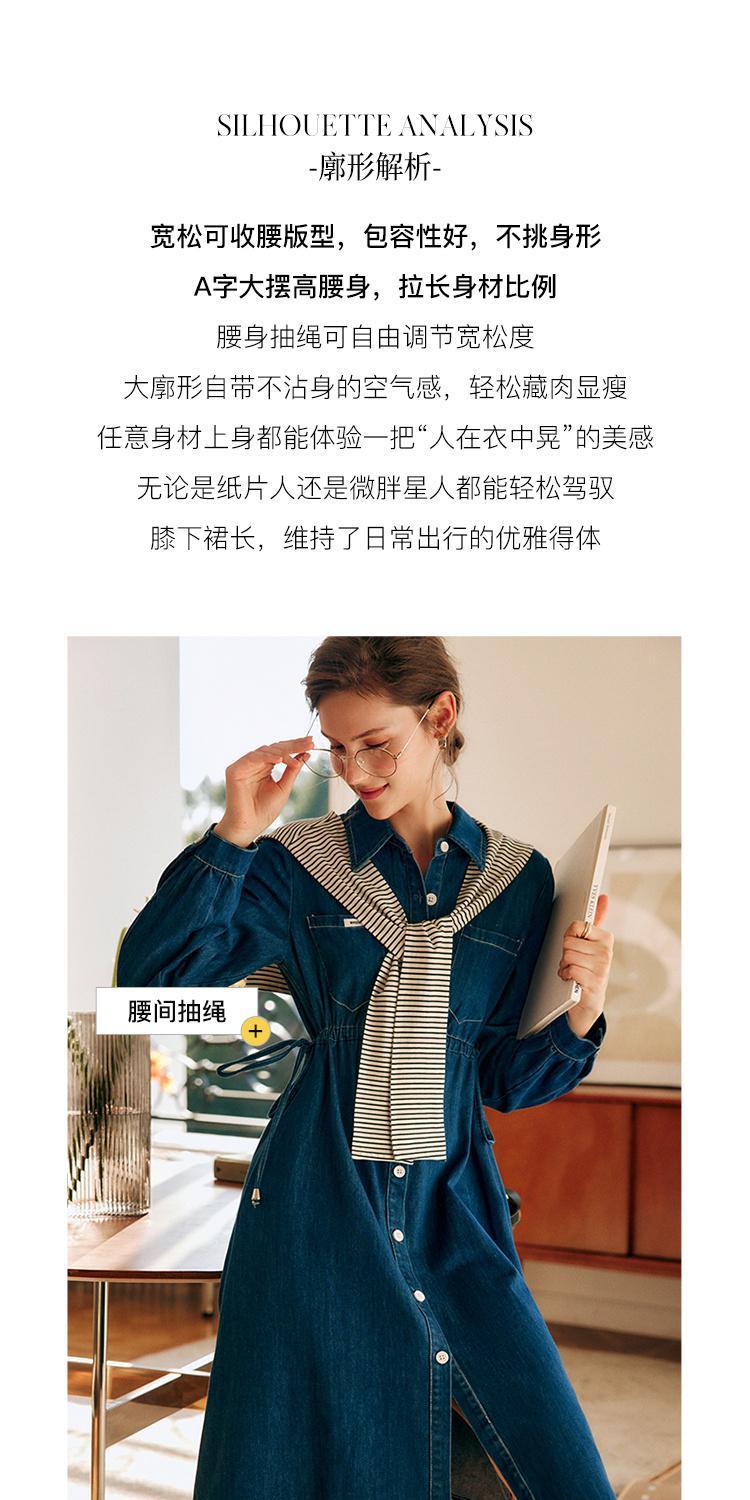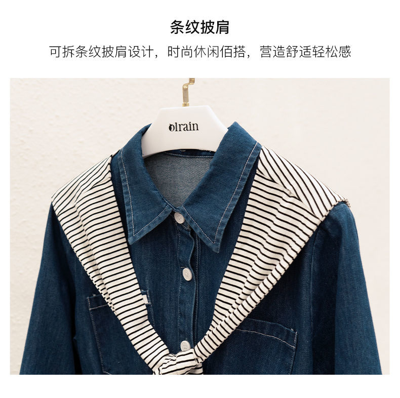 欧芮儿蓝色牛仔连衣裙女春季2022年新款收腰显瘦气质休闲披肩裙子
