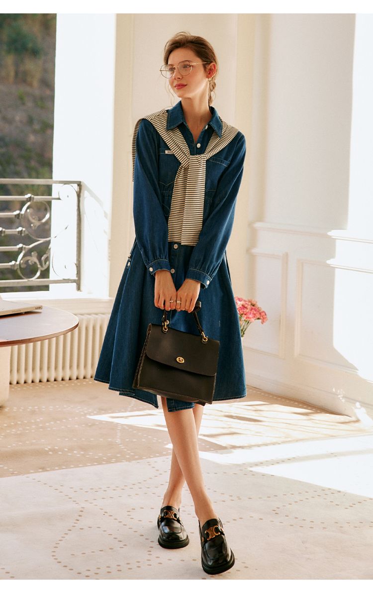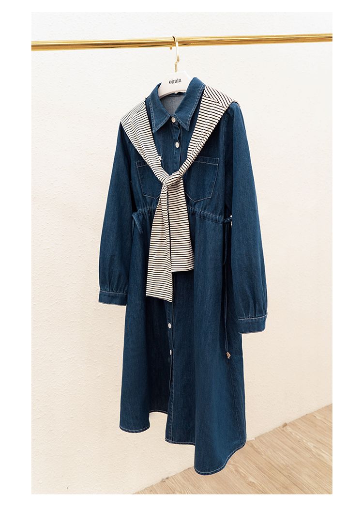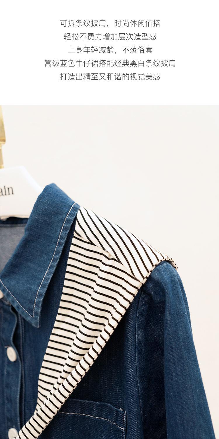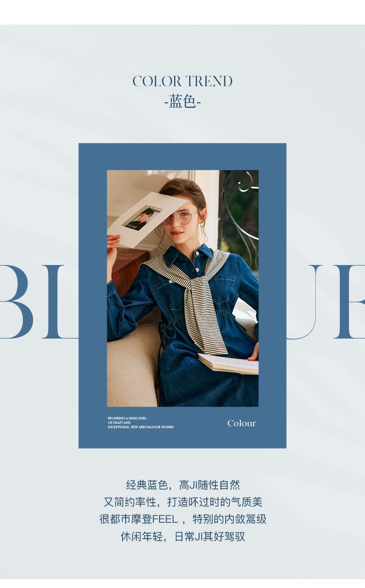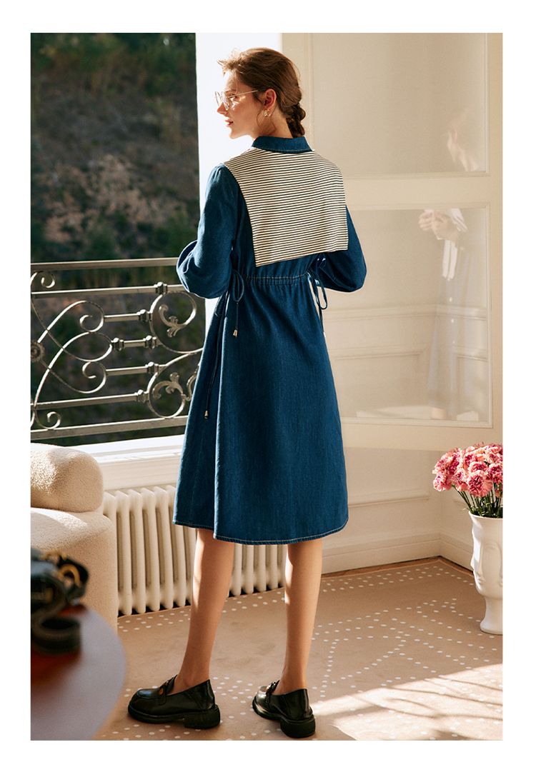 欧芮儿蓝色牛仔连衣裙女春季2022年新款收腰显瘦气质休闲披肩裙子