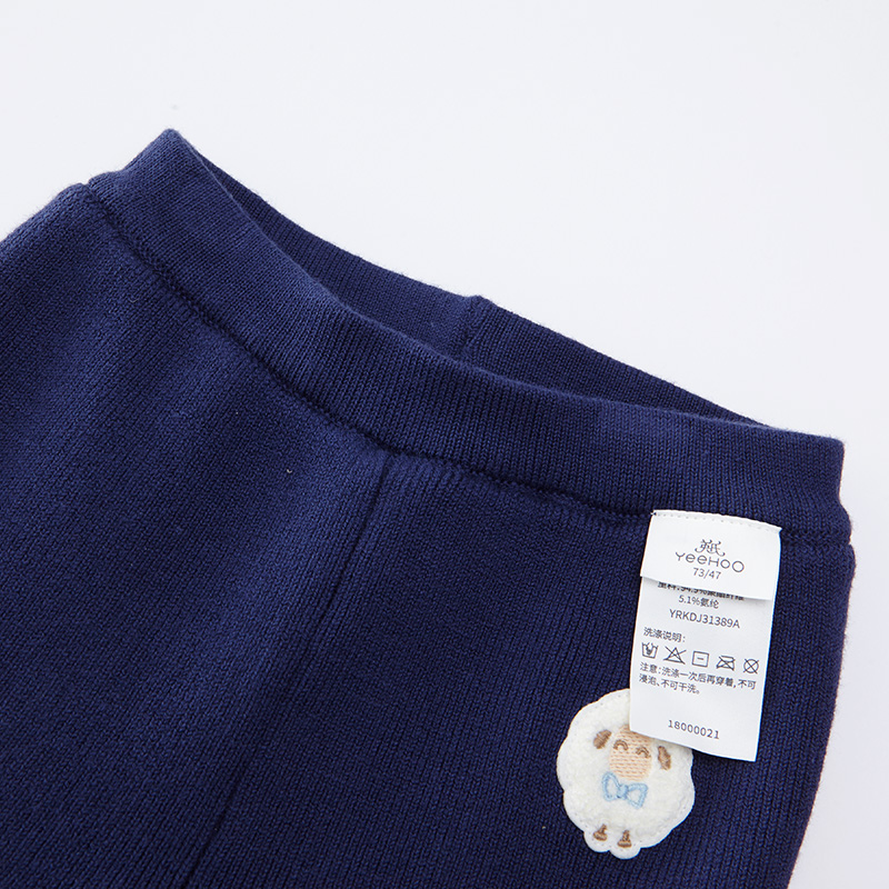 英氏-童衣类(秋)E1英毛打底裤深海滨蓝100CM