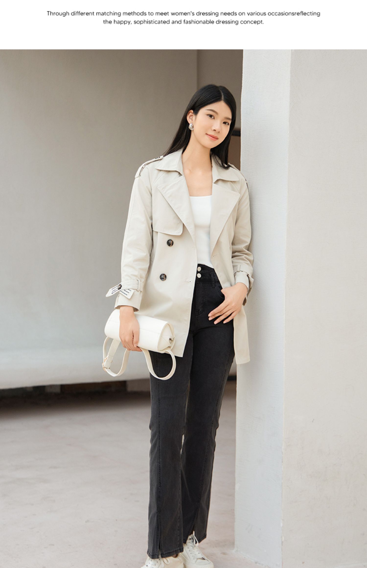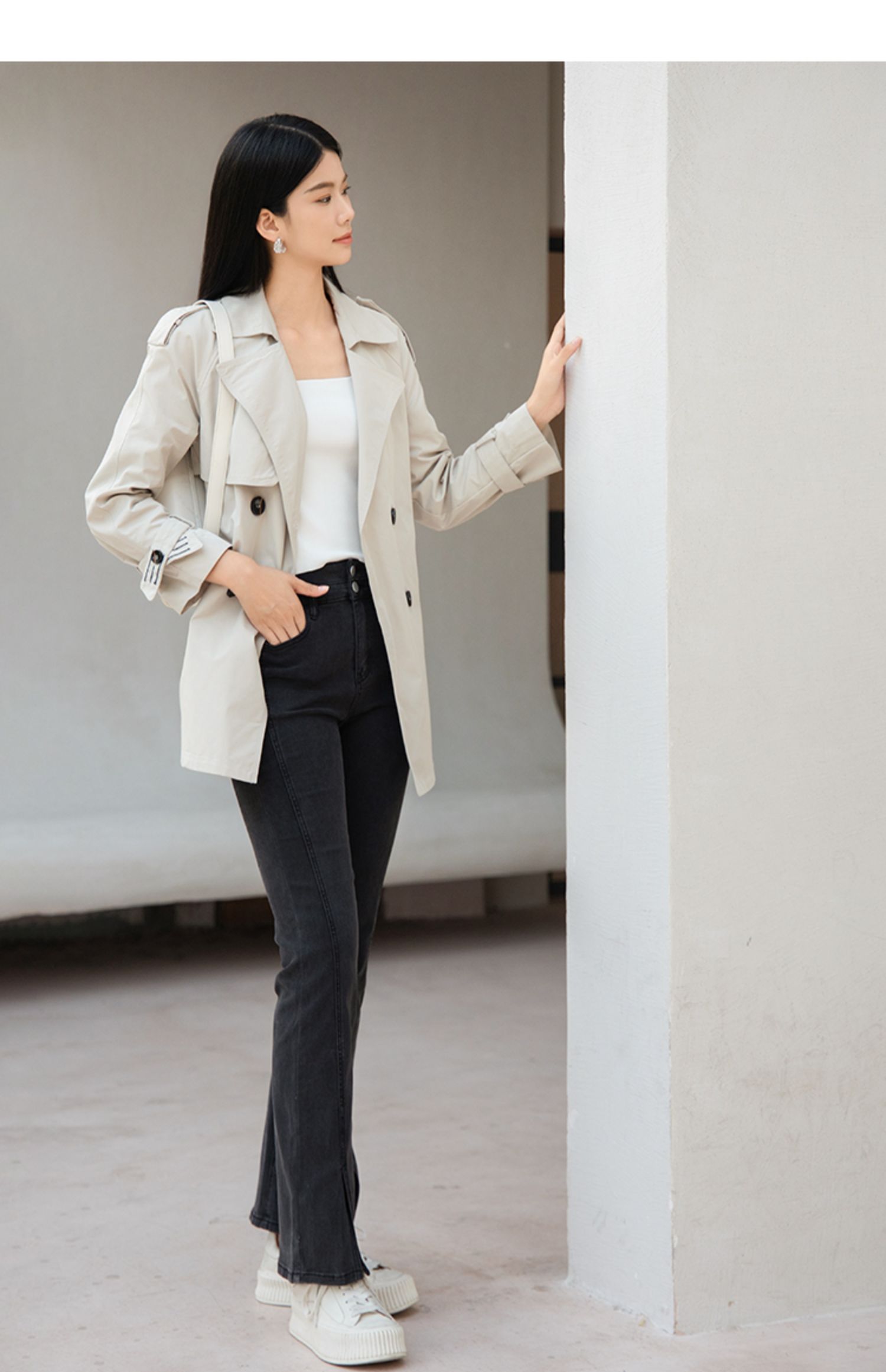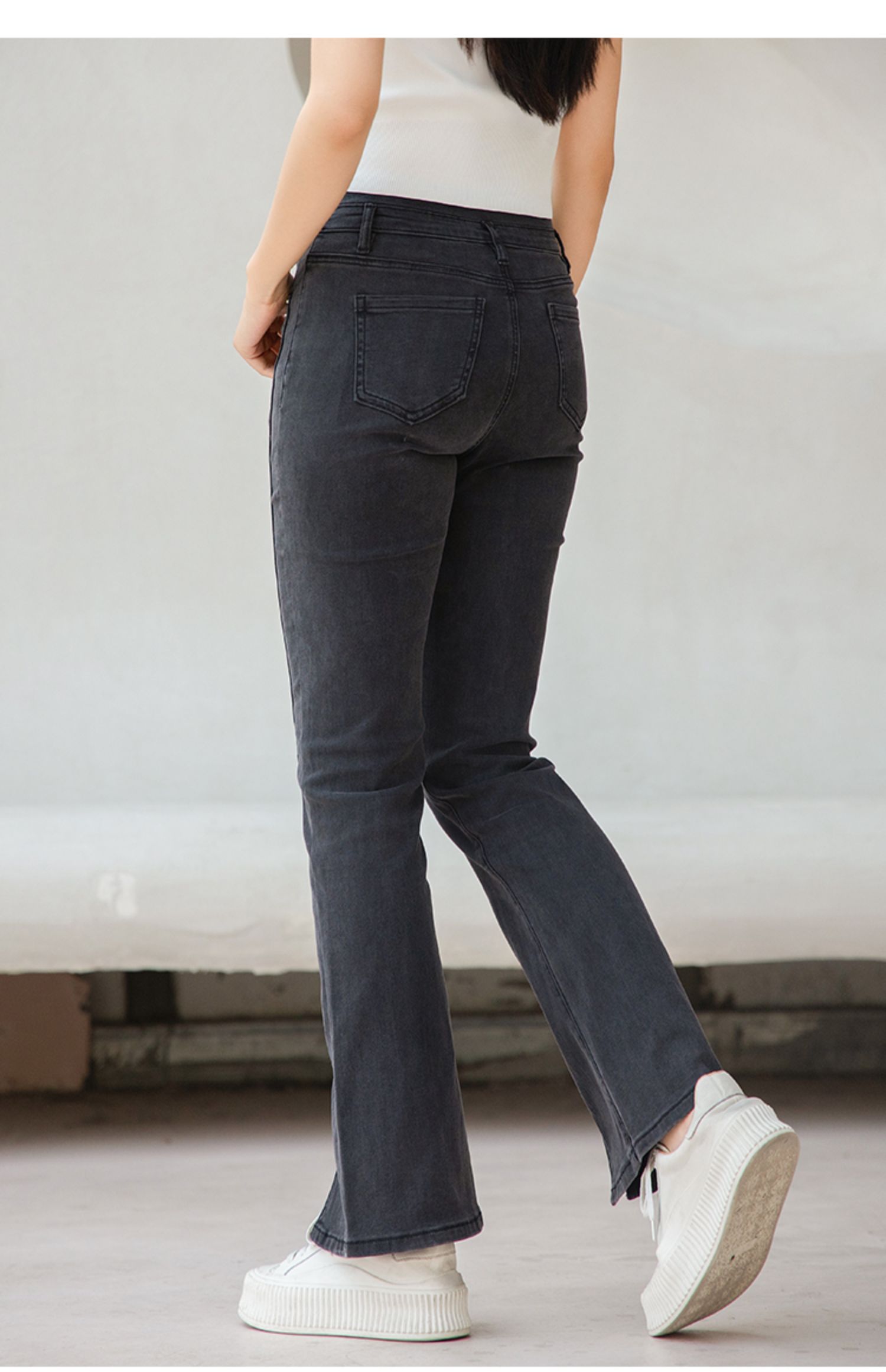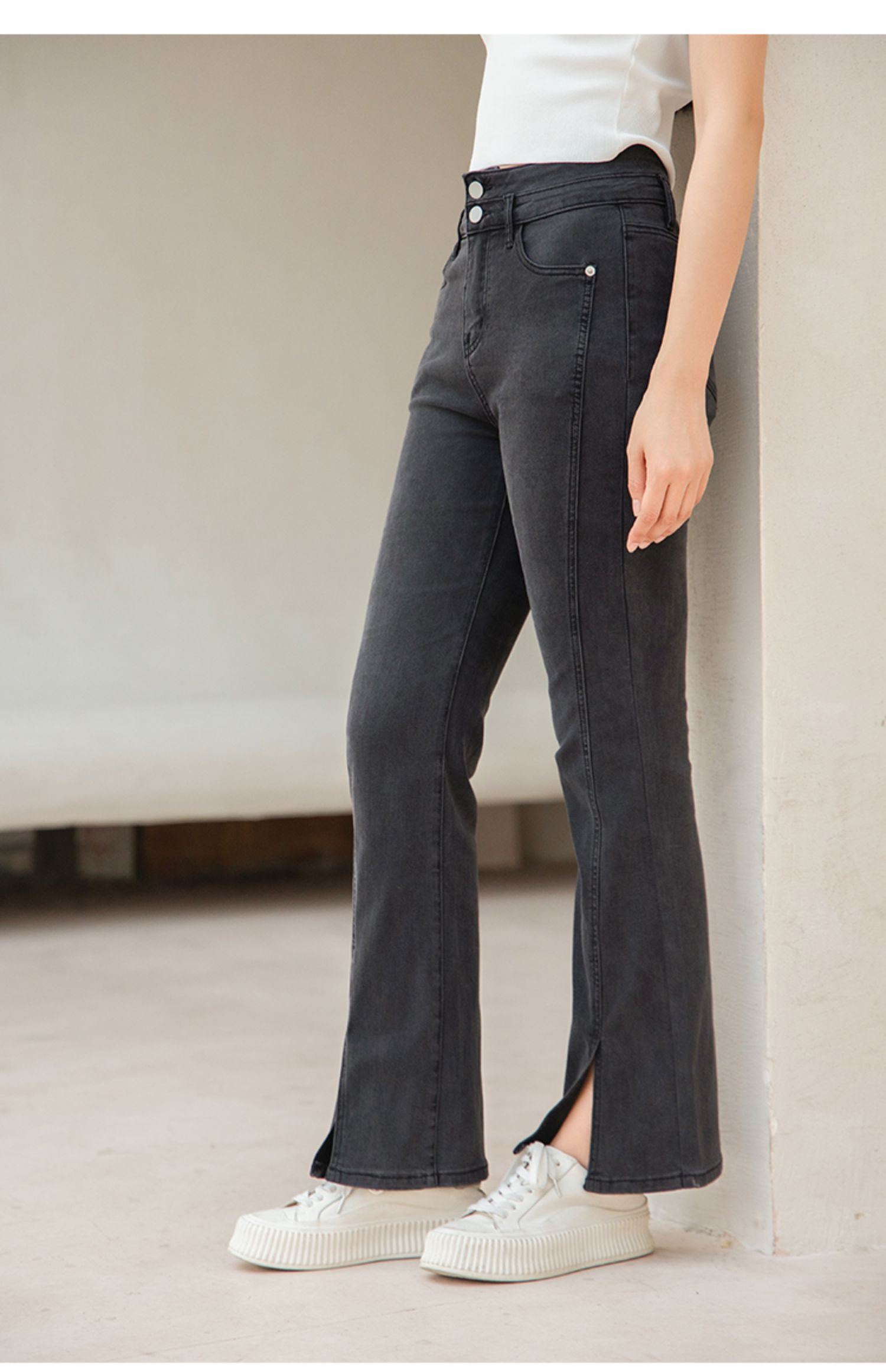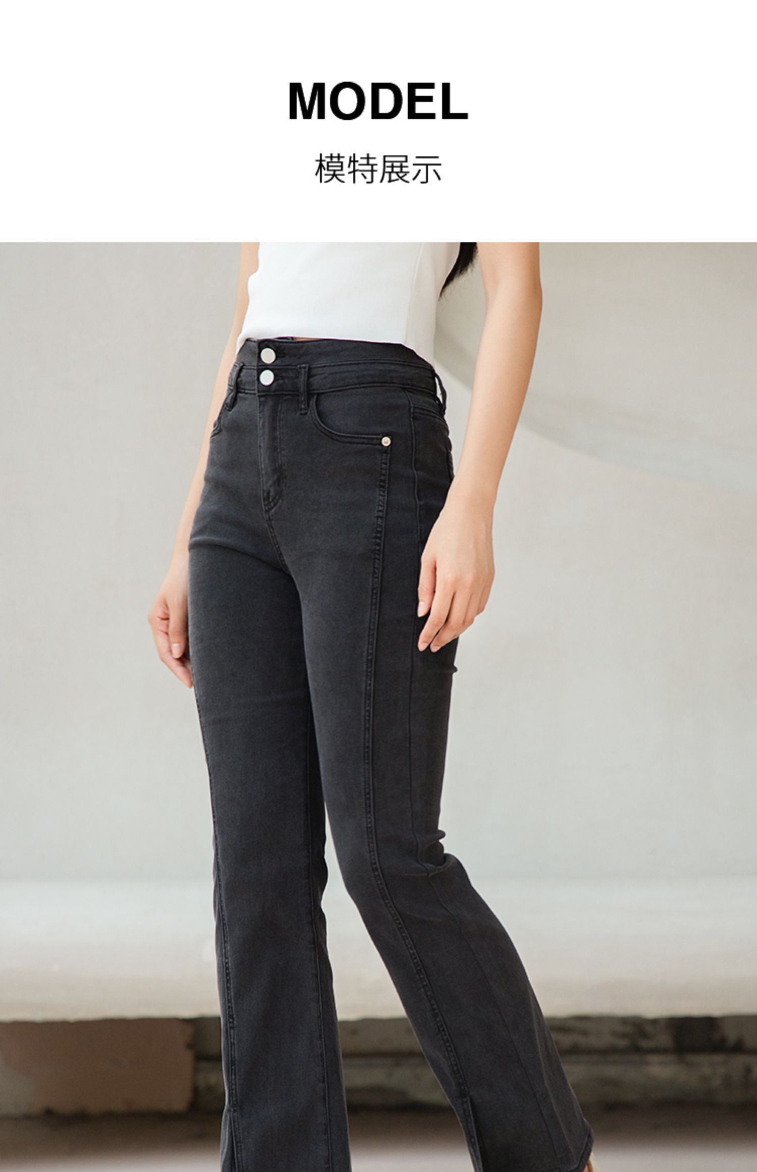 NUTS秋季新款黑色高腰显瘦开叉修身微喇牛仔裤女4321101A1