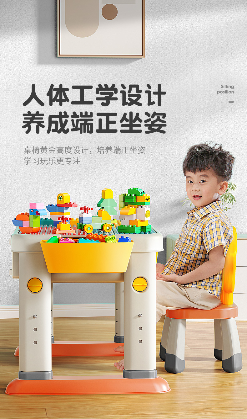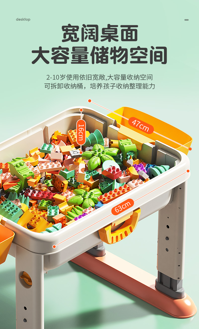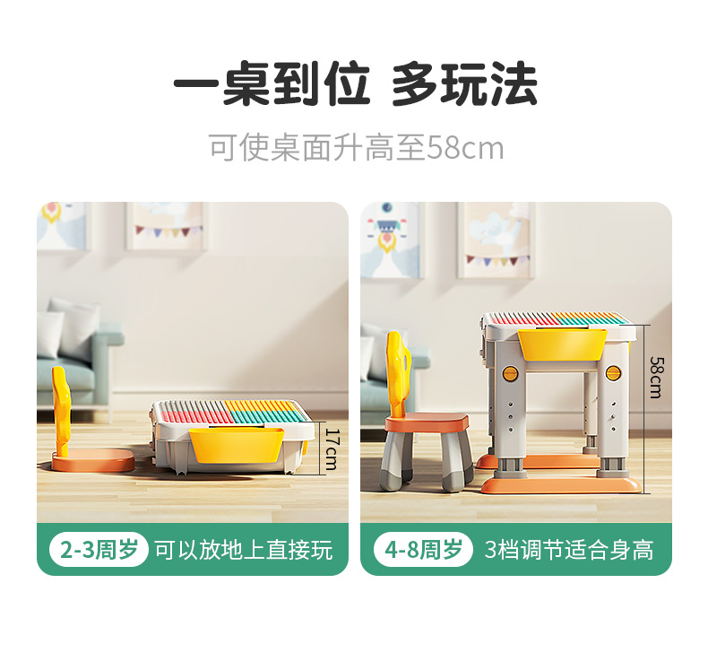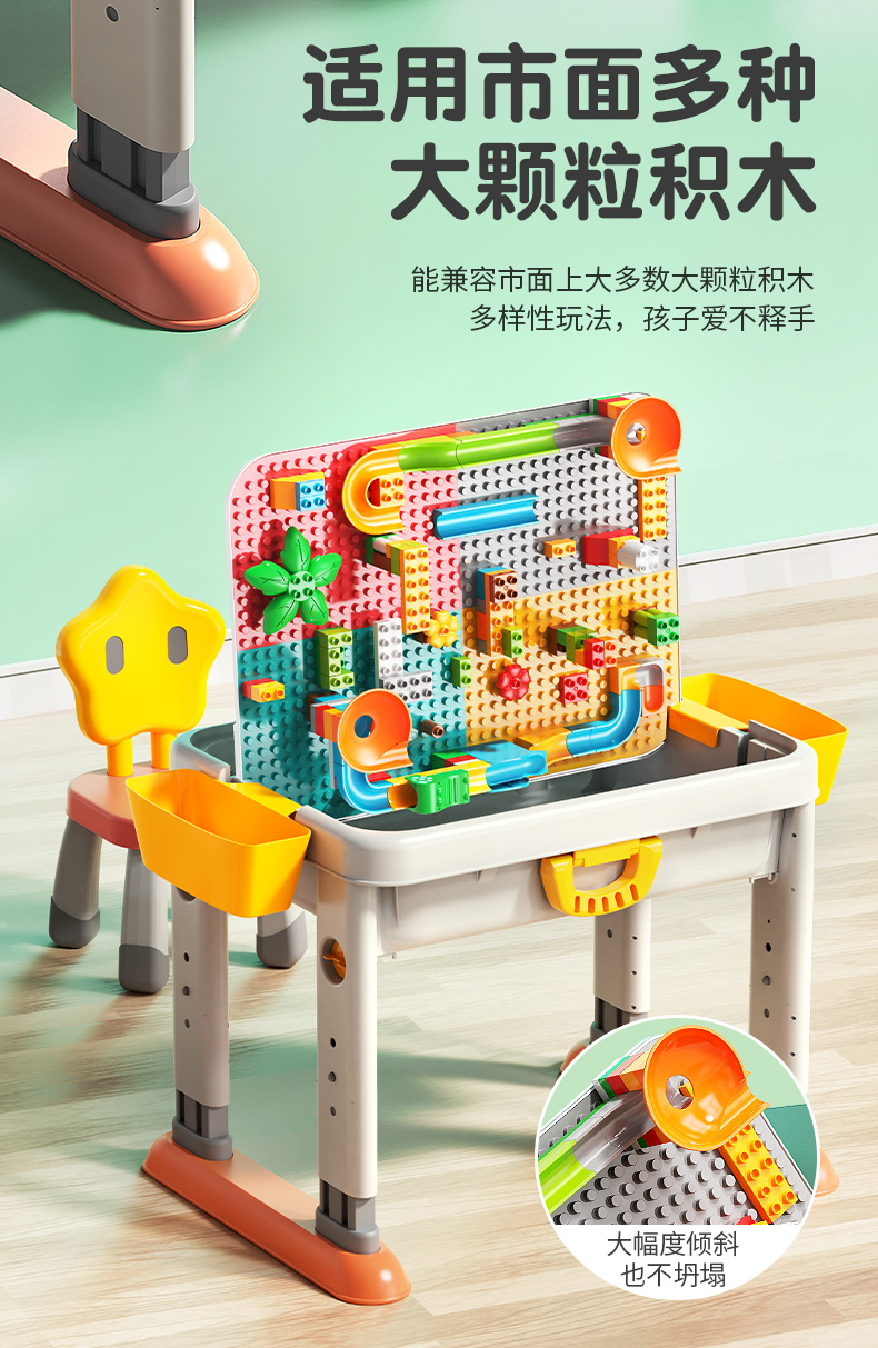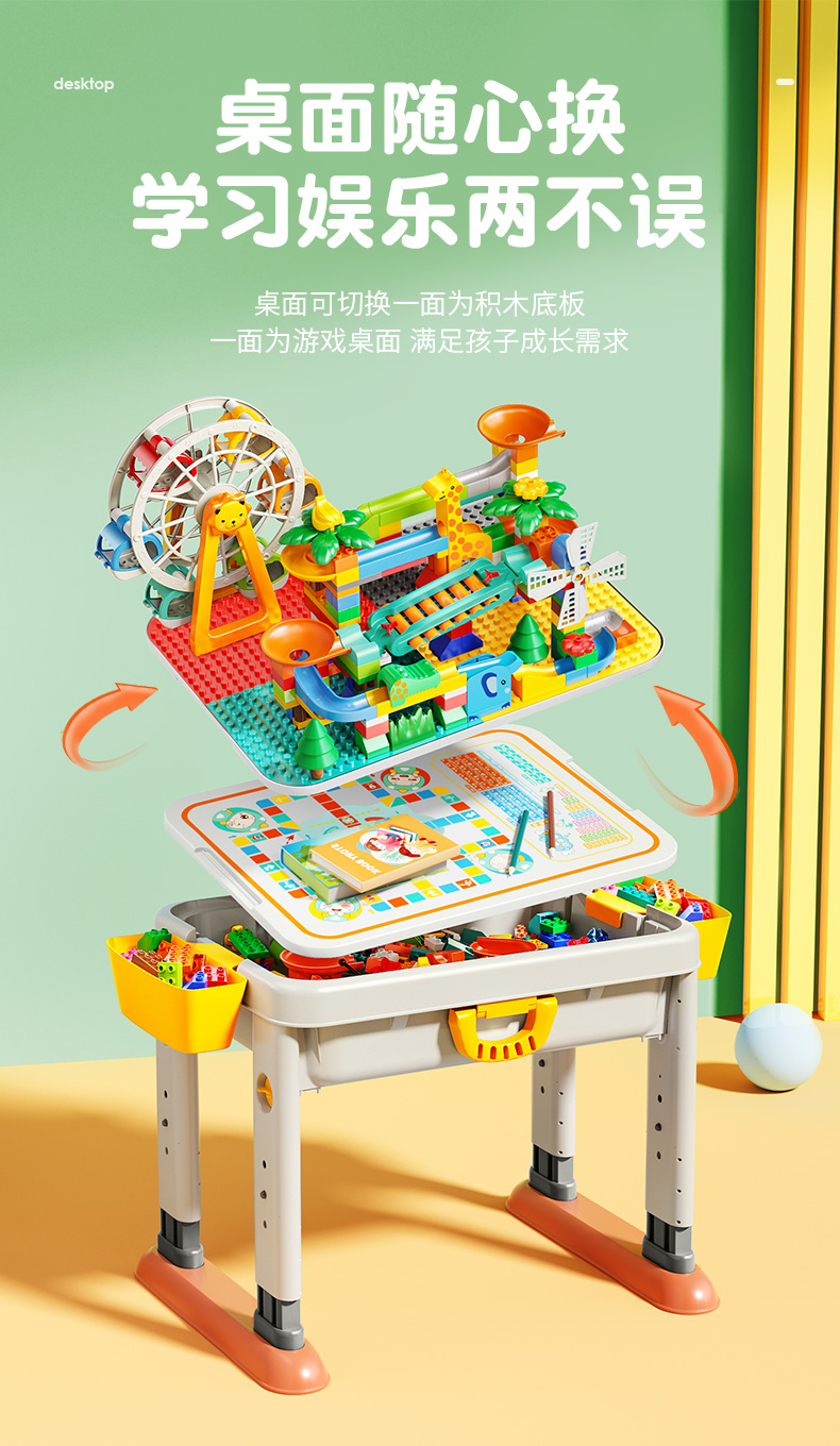费乐积木桌子升降儿童大颗粒多功能宝宝学习拼装拼图男女孩子玩具