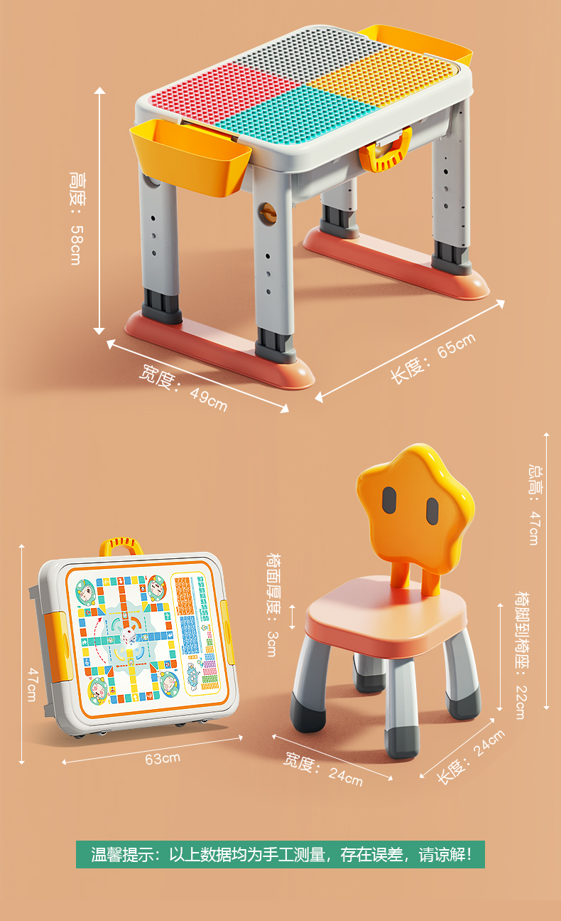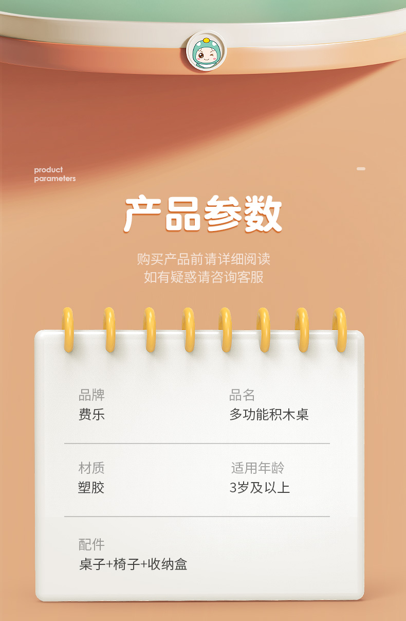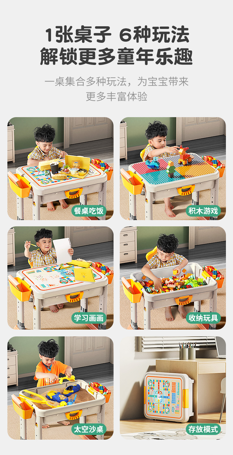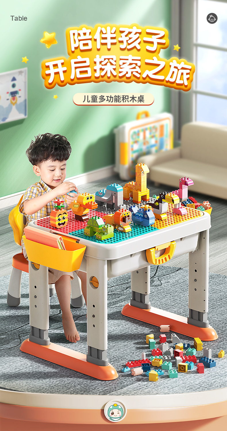 费乐积木桌子升降儿童大颗粒多功能宝宝学习拼装拼图男女孩子玩具