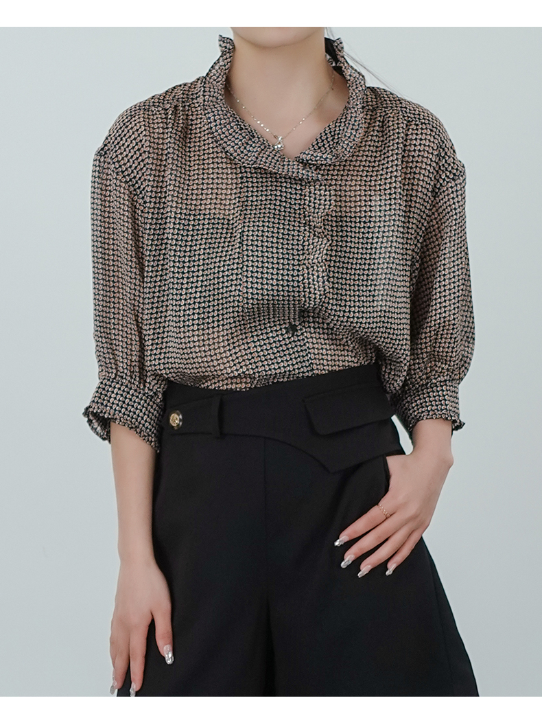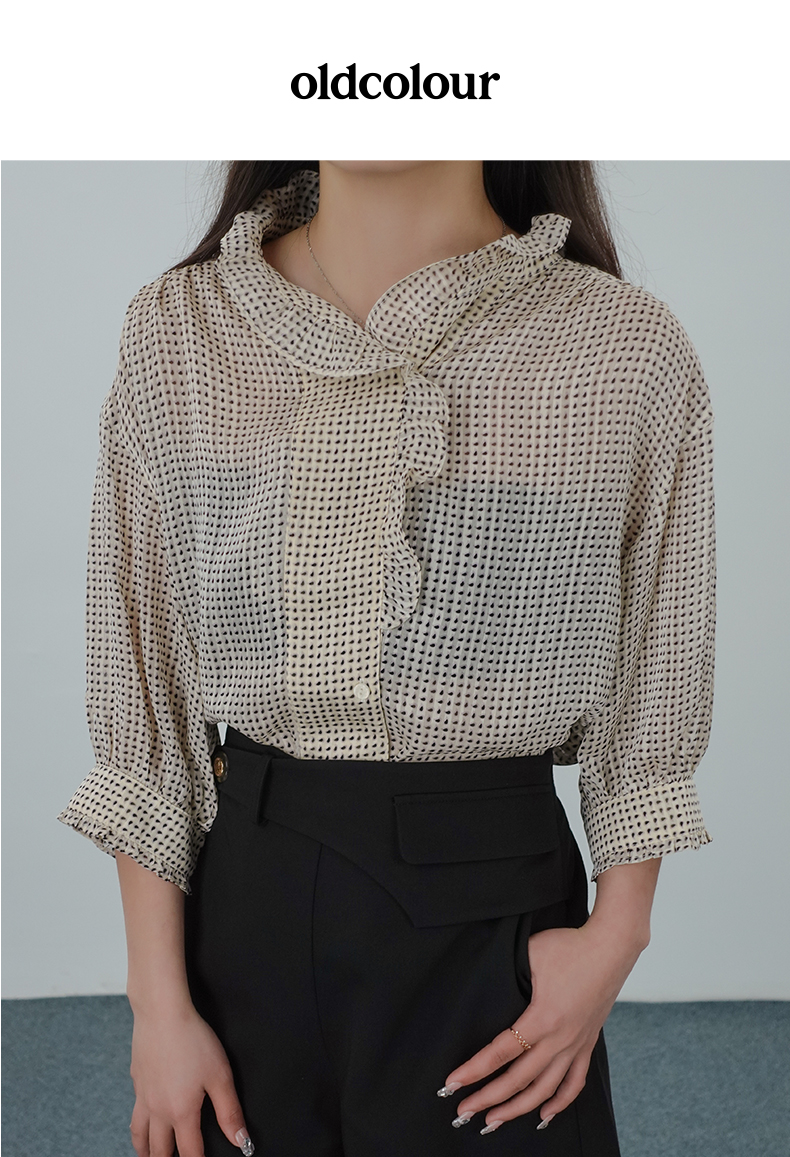 oldcolour夏法式气质温柔木耳边领点点衬衫N22012266