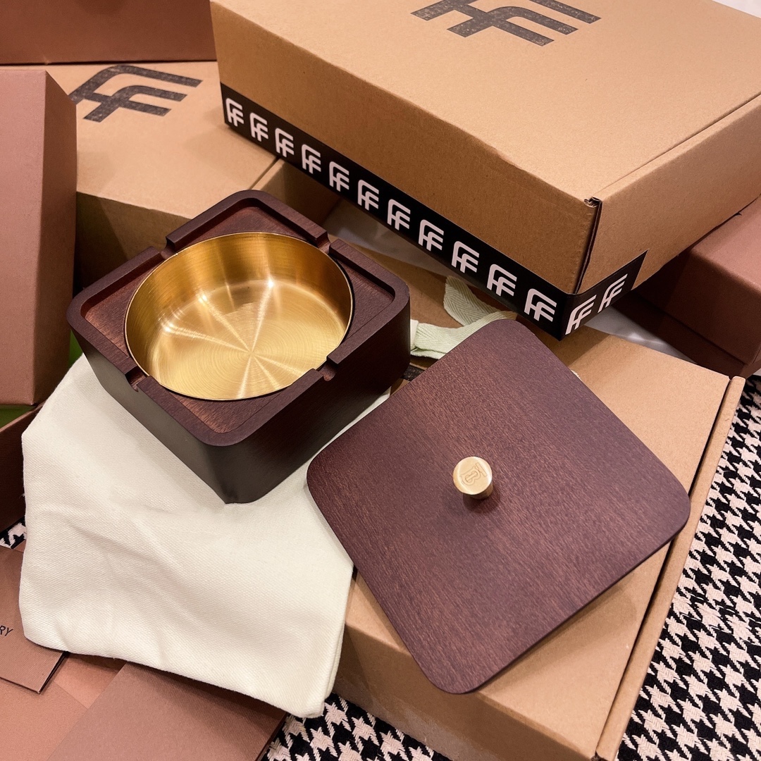 黑胡桃木烟灰缸家用客厅防飞灰香烟缸