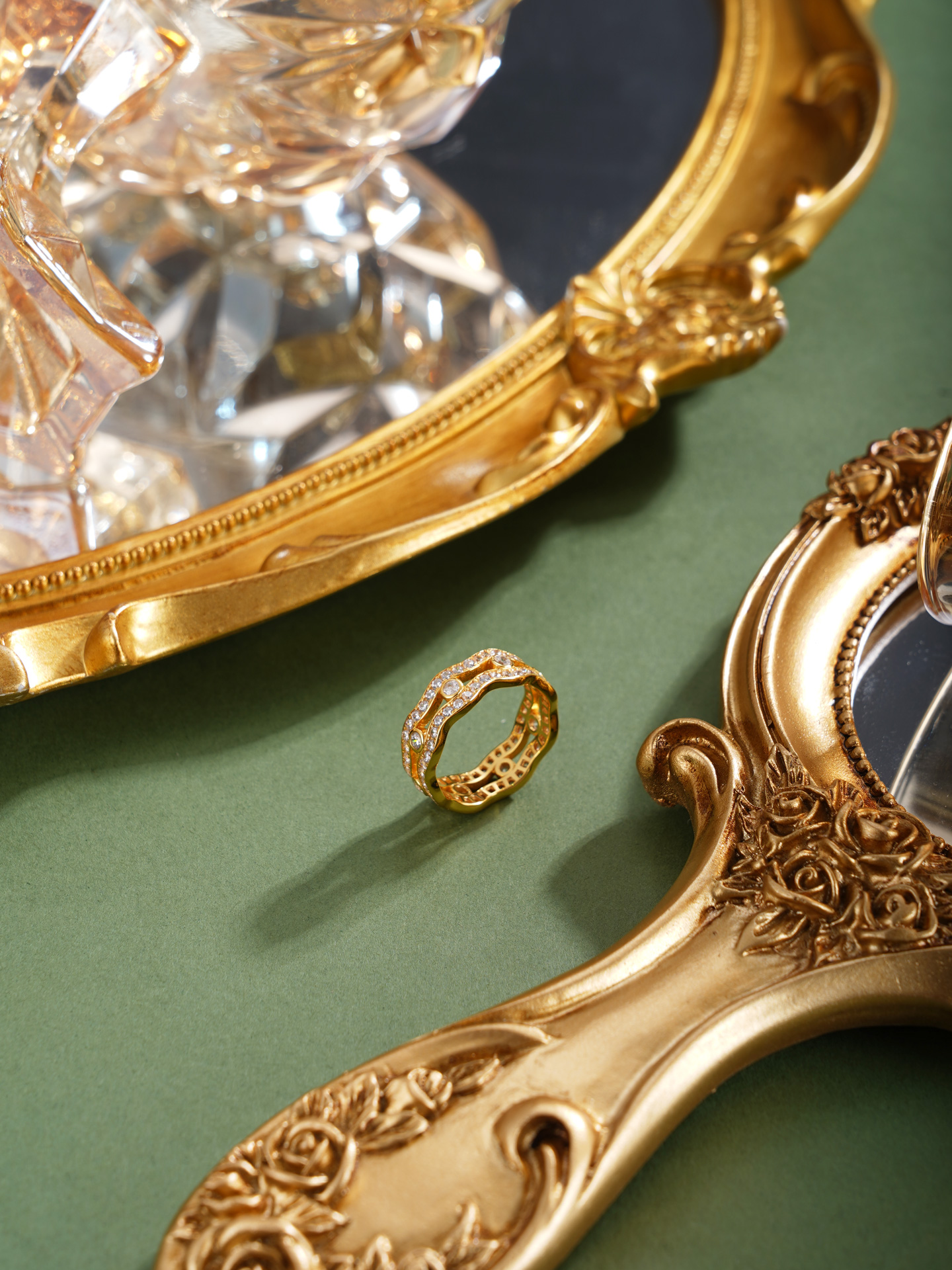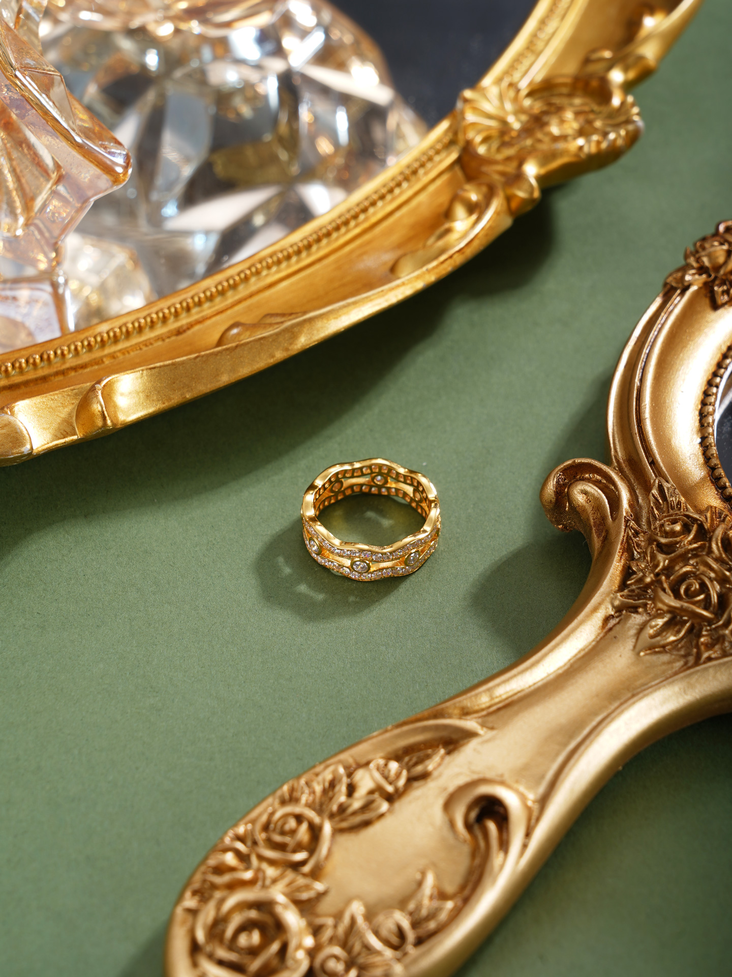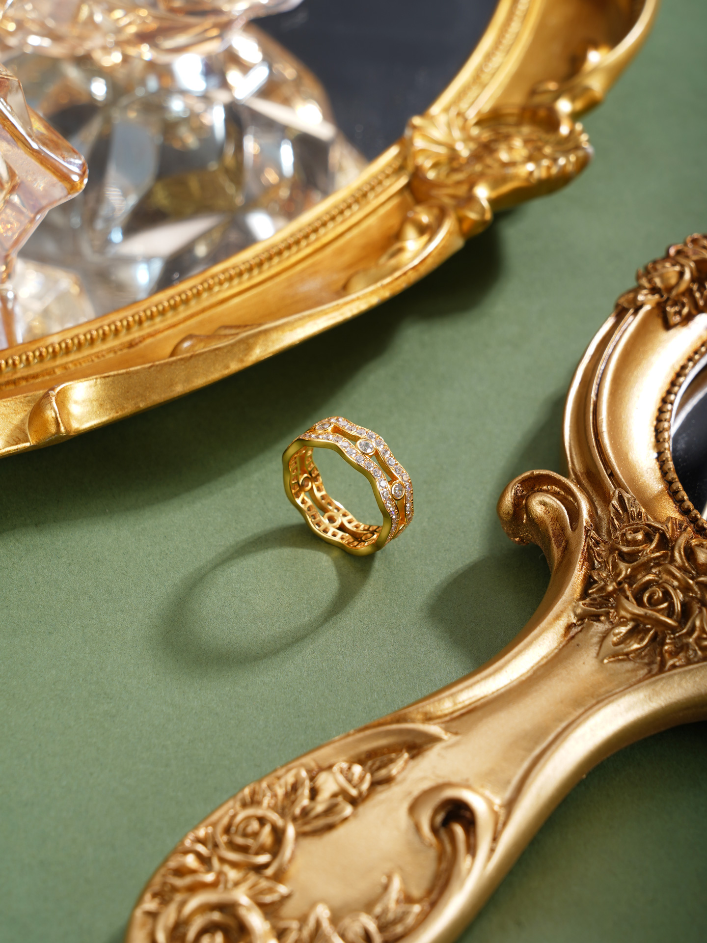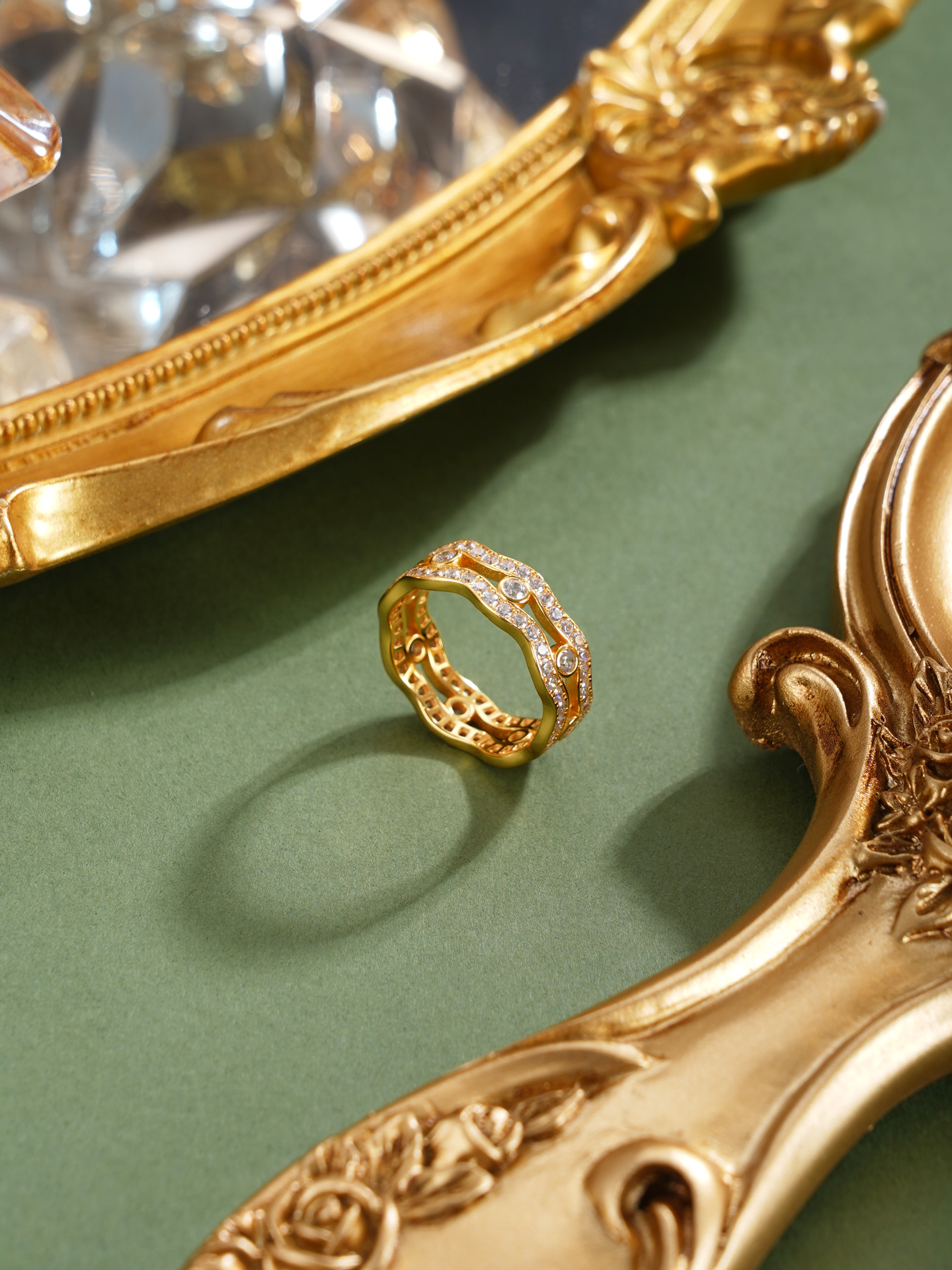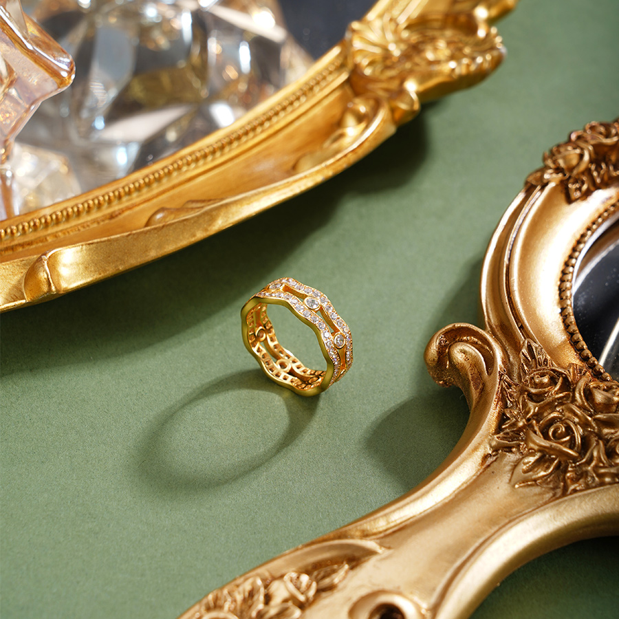 【寓意】:纯银戒指,以涟漪之形喻情意恒久,镀金色彩昭示人生华章。指间生辉,寓意爱意如光,福泽与光彩共耀前程。