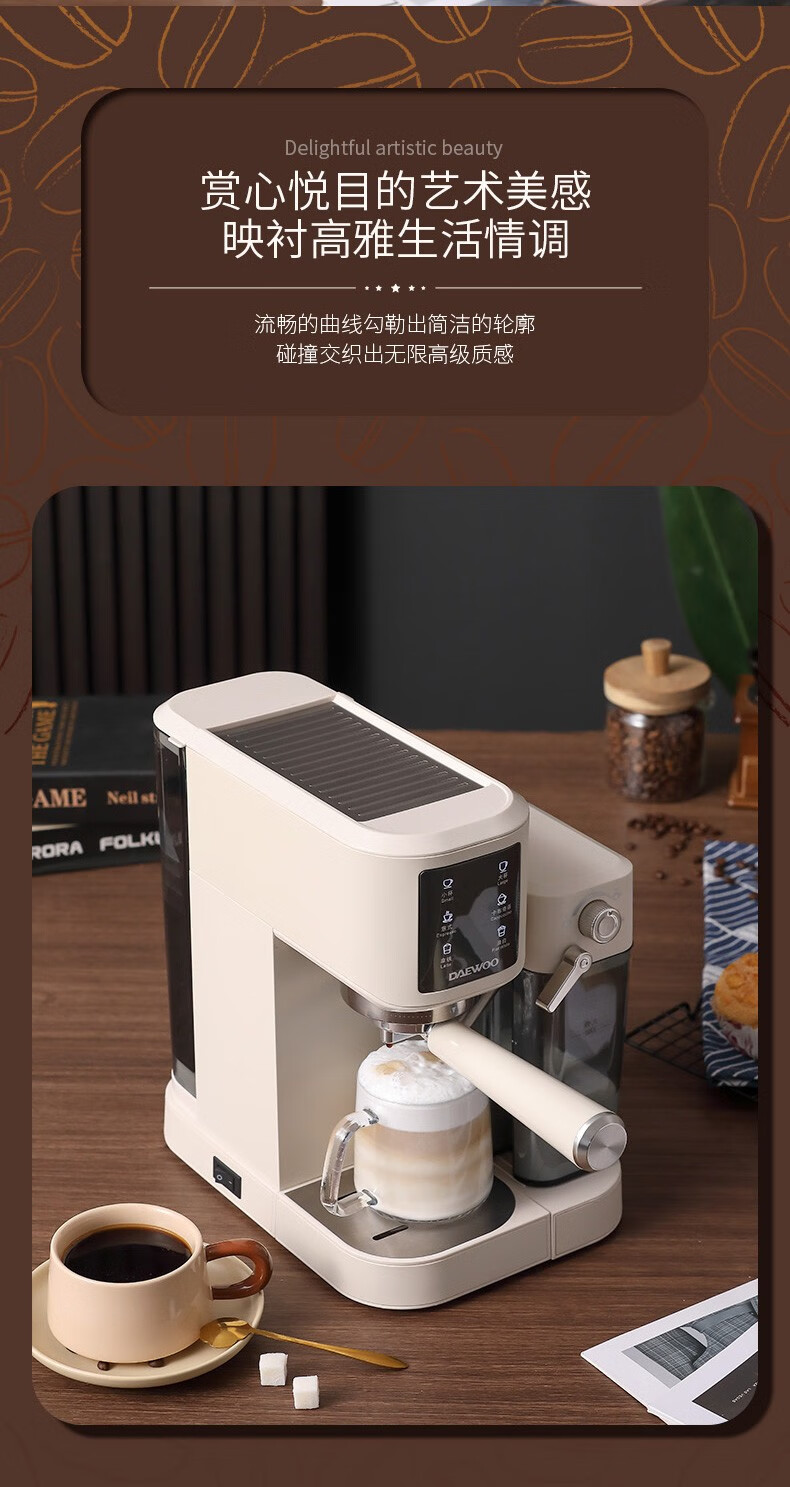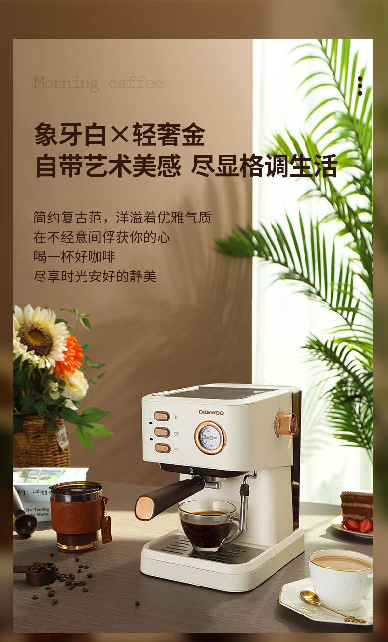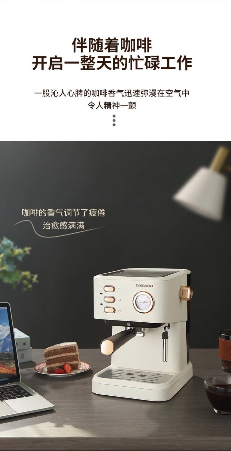 大宇(DAEWOO)咖啡机家用办公室意式打奶泡小型压力咖啡机 DYKF-1233压力咖啡机