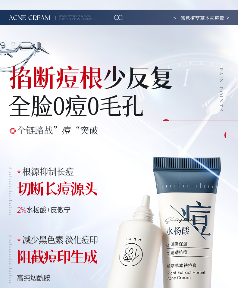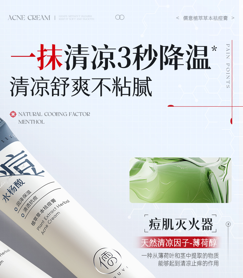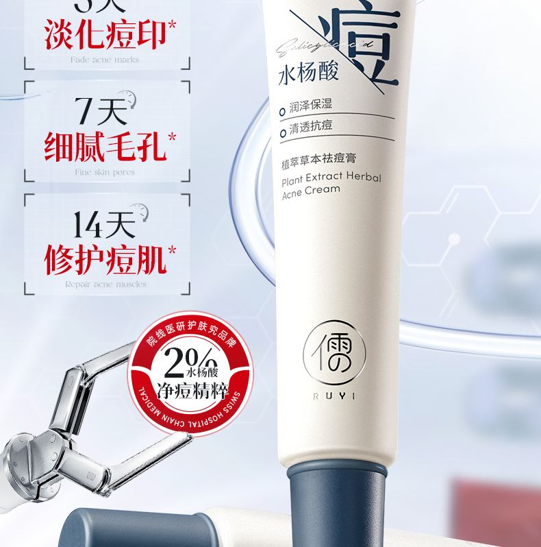 儒意植萃草本祛痘膏30g 水杨酸祛痘膏淡化痘印修护痘坑痘疤祛痘祛闭口粉刺|儒意官方商城