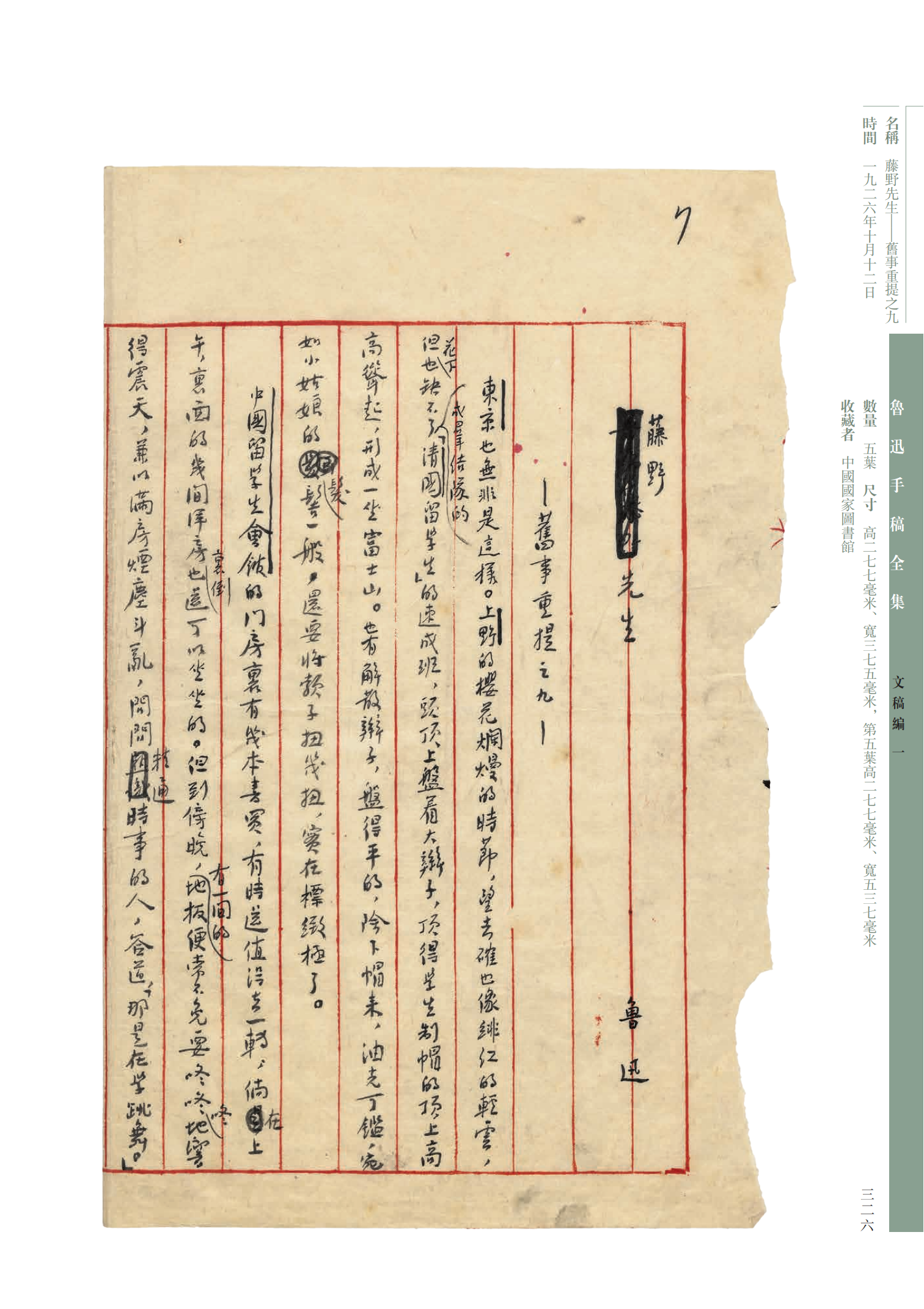 全书分为《文稿编》《译稿编》《书信编》《日记编》《辑校古籍编》《辑校金石编》《杂编》七编,分别收录鲁迅文学创作手稿、翻译手稿、书信、日记、辑校整理古籍相关手稿、辑校整理金石相关手稿及前六类手稿之外的鲁迅手稿。各类之下按手稿写作、翻译或出版时间排序。