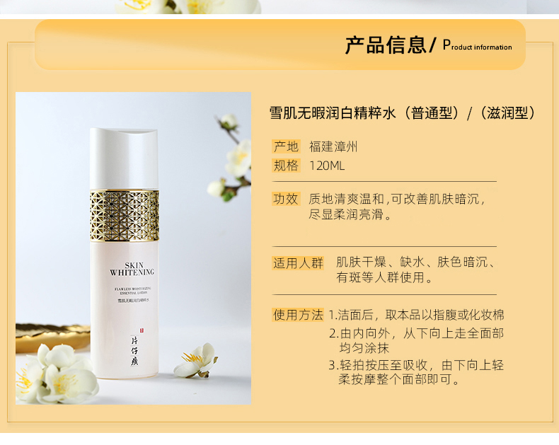 清澈光亮 雪润光采的片仔癀雪肌无暇润白精粹水 120ml/瓶