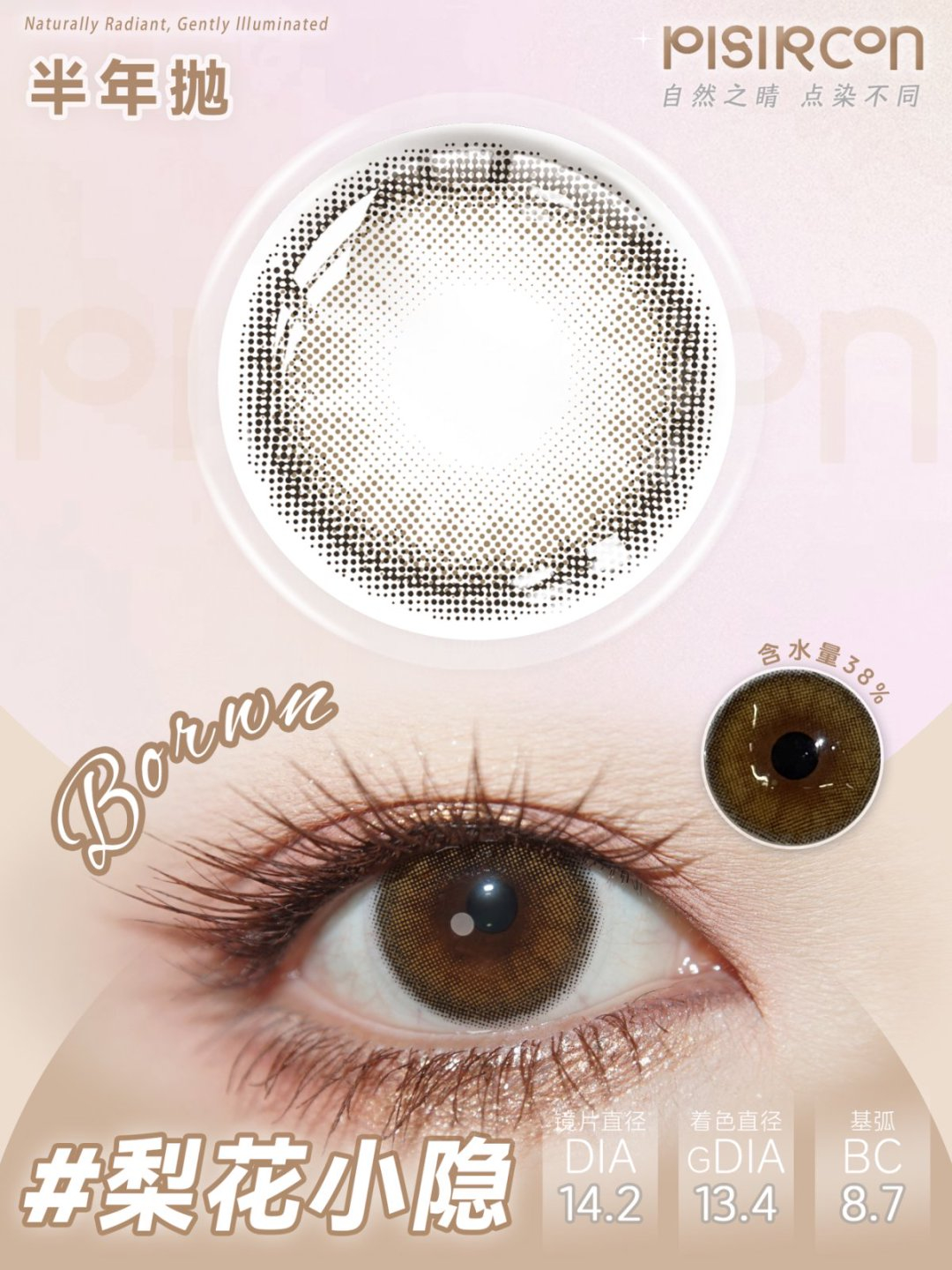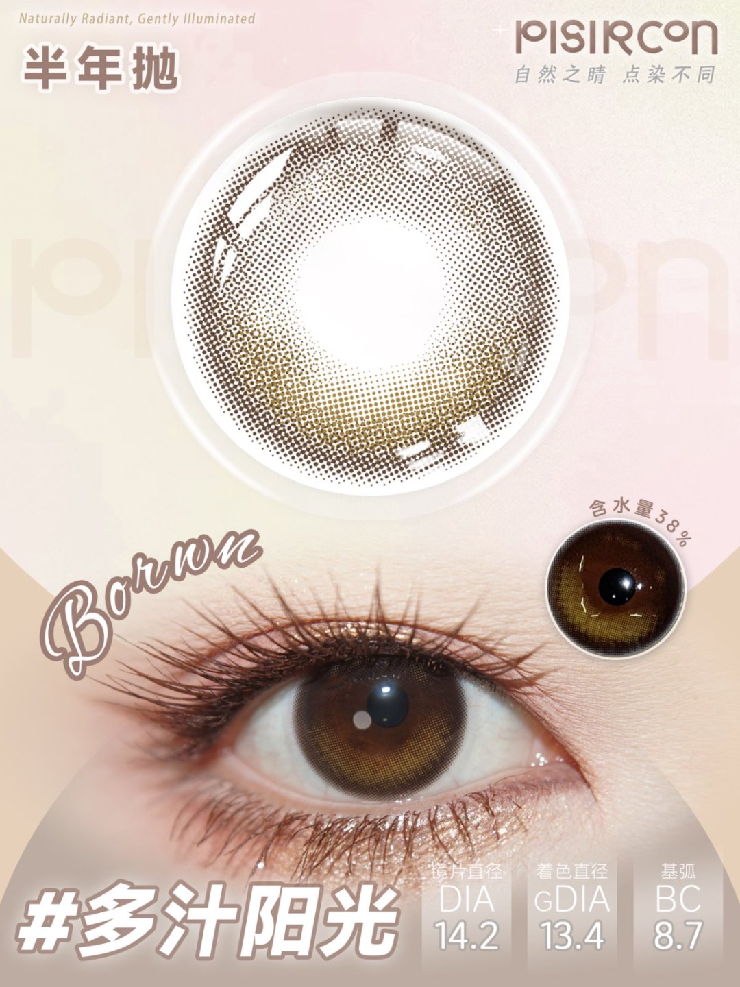 pisircon半年抛 贝尔摩德/多汁阳光/自由遇见/梨花小隐 14.2mm 棕/灰