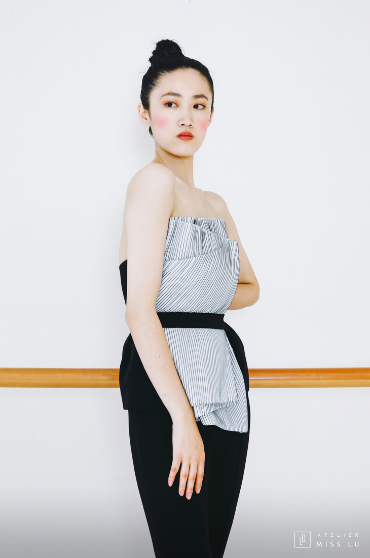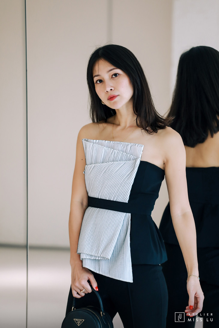 AtelierMissLu / Melba-黑色拼纱抹胸上衣