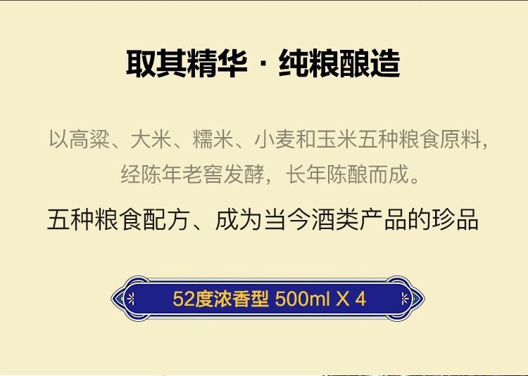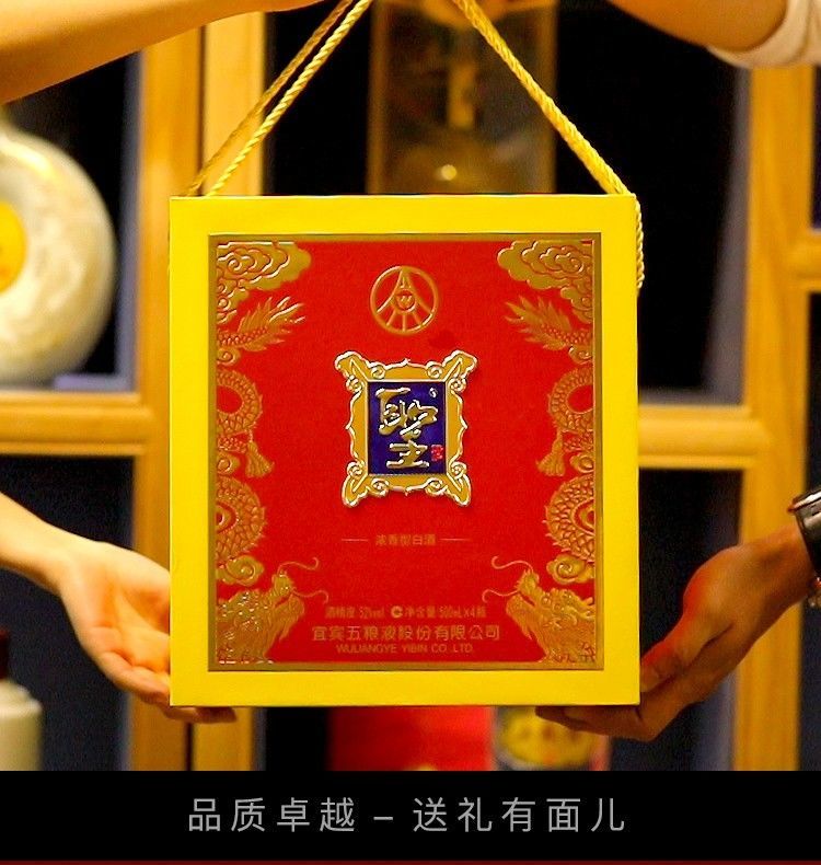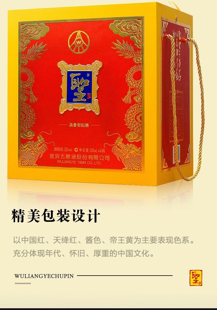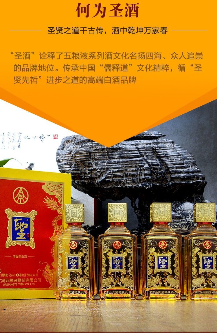 五粮液圣酒玉玺 琥珀金礼盒装 52度 浓香型白酒 500ml×4瓶礼盒装