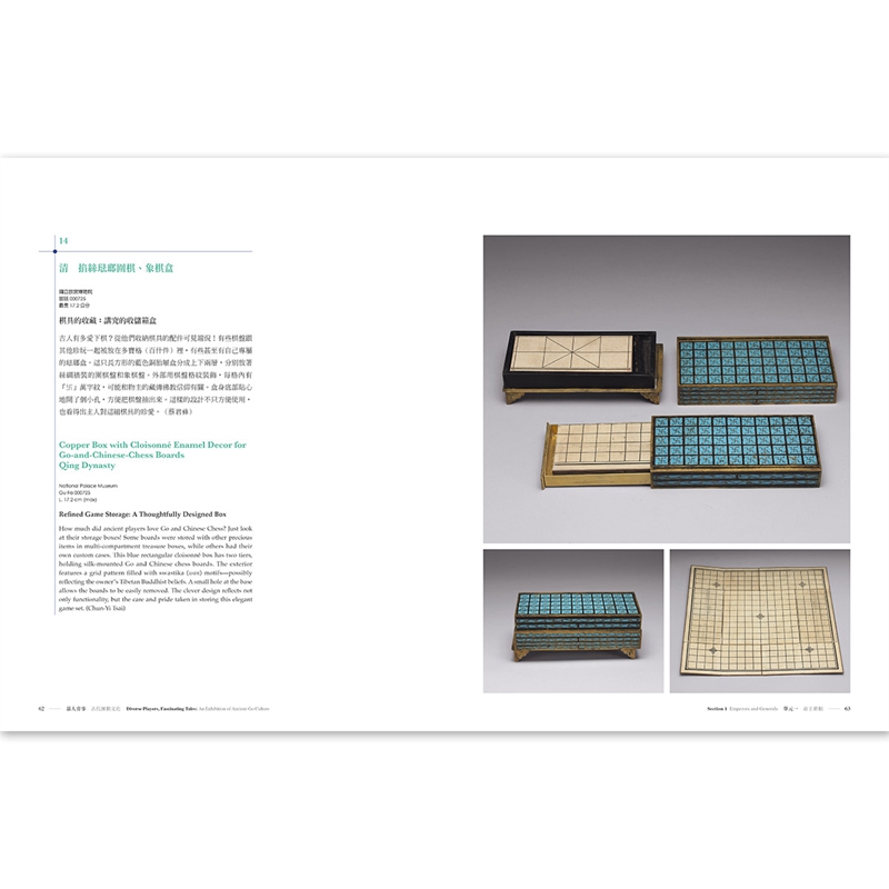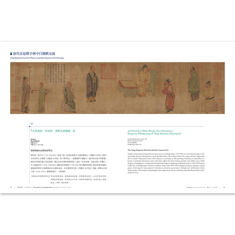 透过六十余件跨越汉至清的精选书画、文献与器物,我们看见帝王将相在棋局中运筹帷幄,文人雅士借手谈抒发感怀,僧侣神仙于对弈间参悟生死,仕女闺秀在棋盘上消磨时光。我们也介绍多样的棋谱与棋具,并呈现六博、双陆、象棋等古代游戏的文化面貌,展现古人生活中的智慧与情趣。 「台湾棋坛风云」单元则聚焦当代台湾棋士如何登上国际舞台,续写属于台湾的「碁人弈事」。
