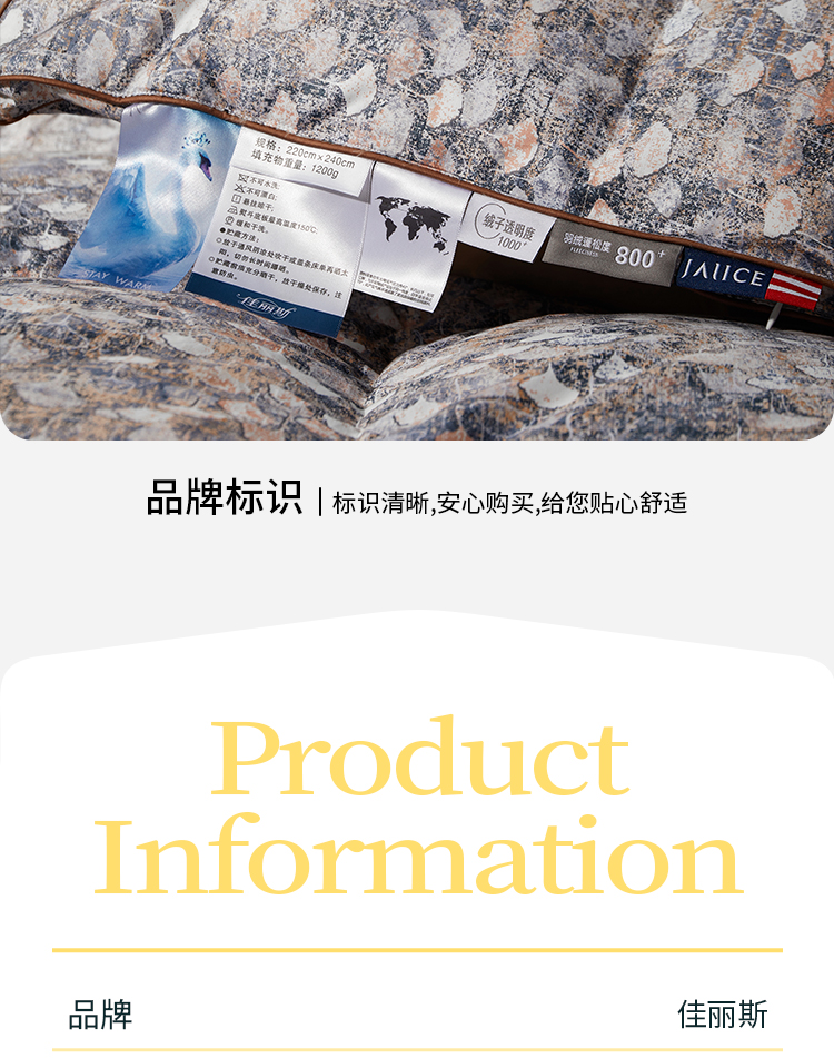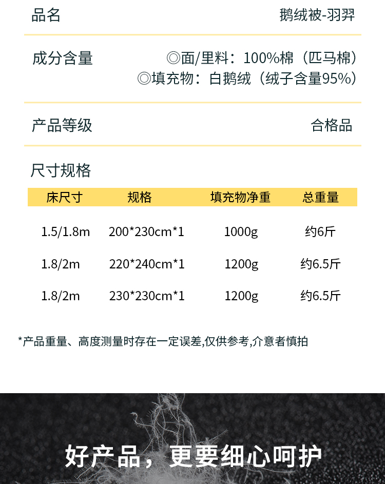 佳丽斯羽绒被95白鹅绒冬被芯加厚保暖抑菌匹马棉鹅绒被子