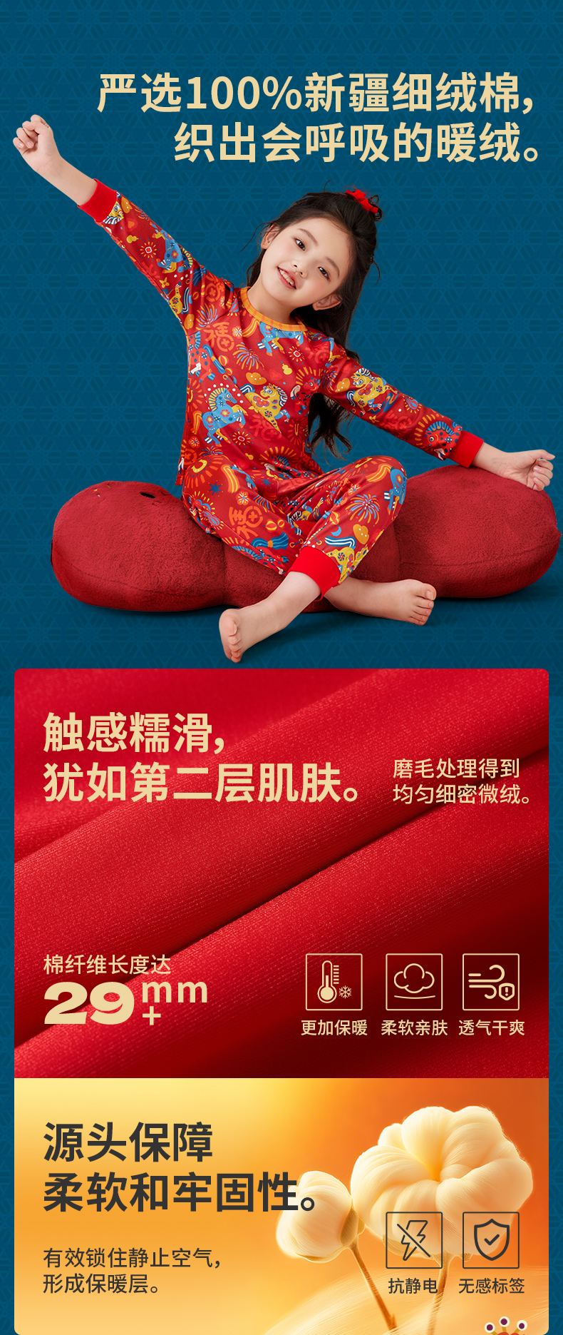 年衣童装家居服套装冬季新款男女童居家内衣盛世跃马家居服套装