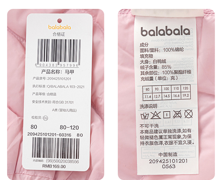 【爆品主推】巴拉巴拉balaOne儿童羽绒马甲女童男童小童外套新款童装2025秋冬