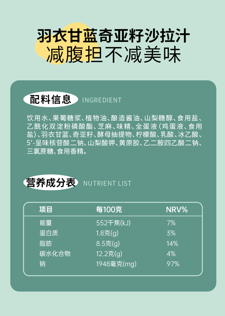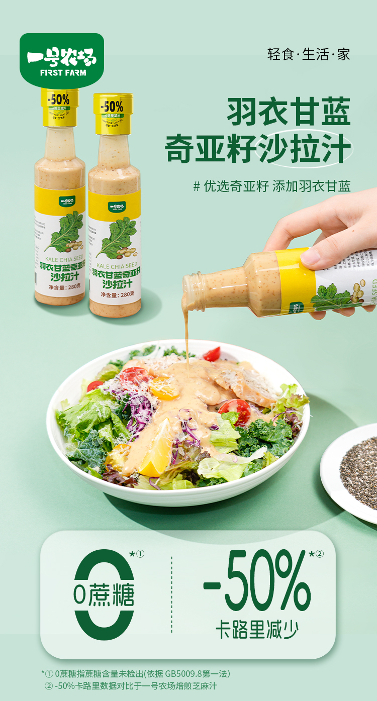 全新升级款【羽衣甘蓝奇亚籽沙拉汁】 -50%卡路里 0蔗糖添加 优选奇亚籽 特别添加羽衣甘蓝 减脂期必备灵魂酱汁