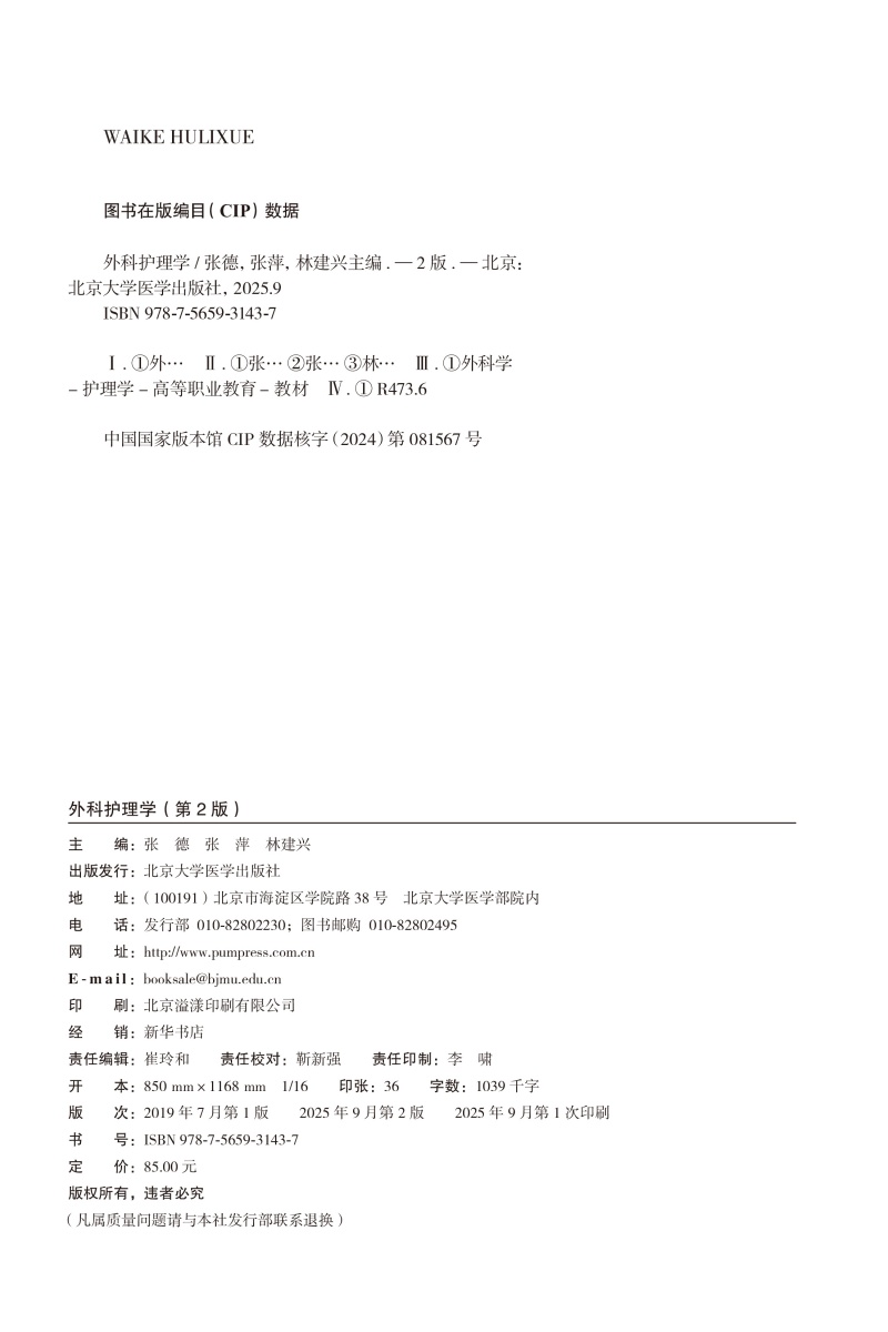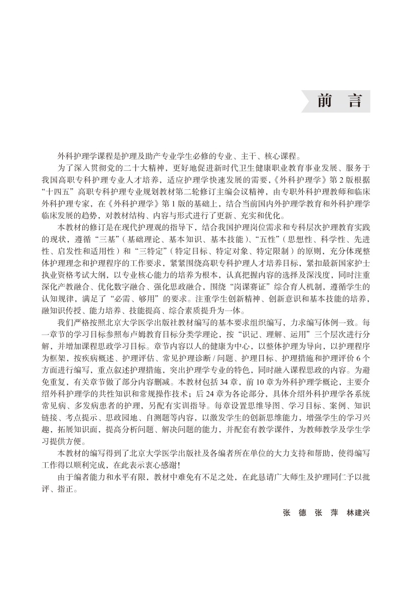 外科护理学 第2二版 十四五卫生高等职业教育专科校院合作“双元”规划教材 张德 张萍 林建兴 供护理助产专业用北京大学医学出版社