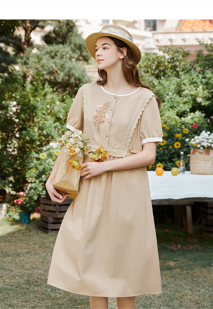 famecoco范可儿休闲修身连衣裙女夏装文艺刺绣天丝棉长裙FAB3FA001