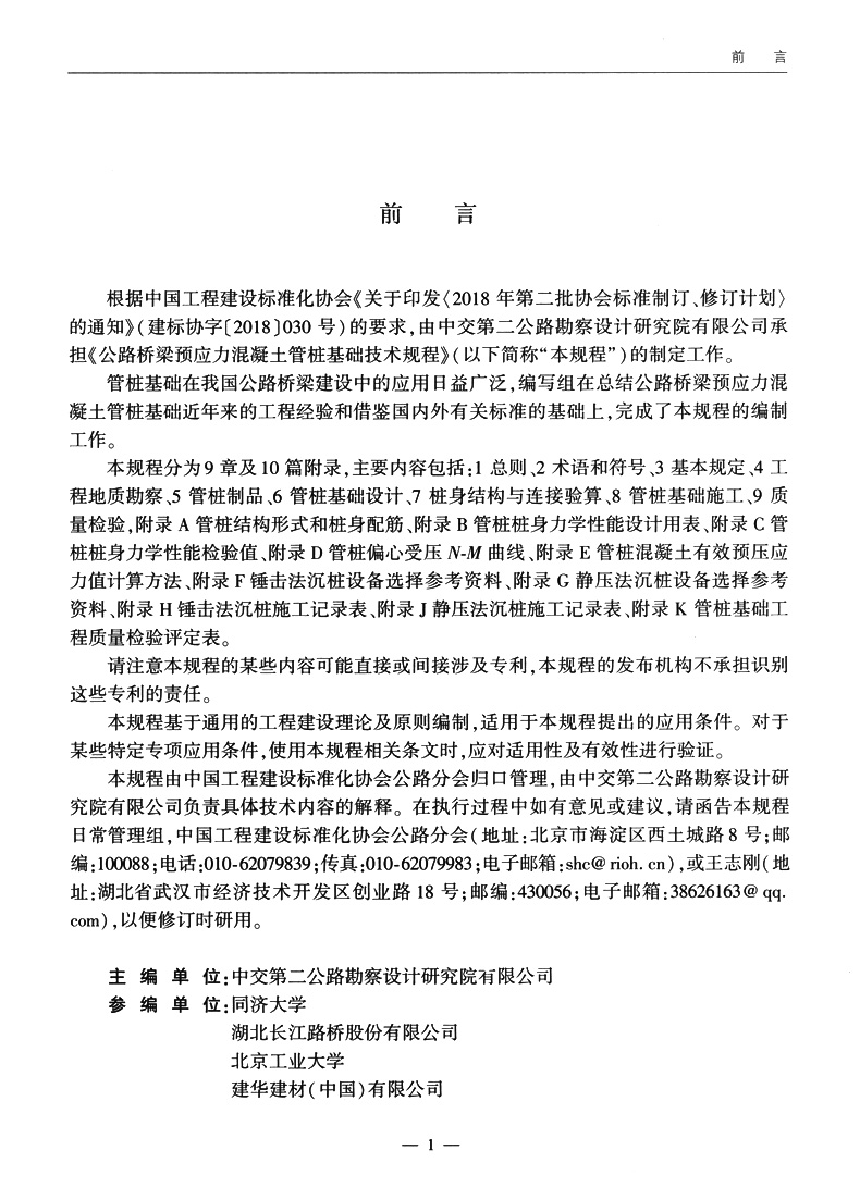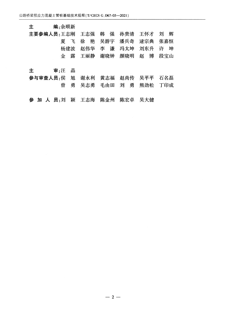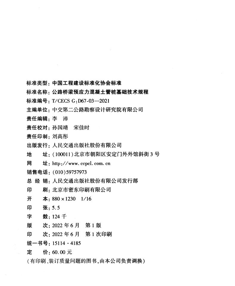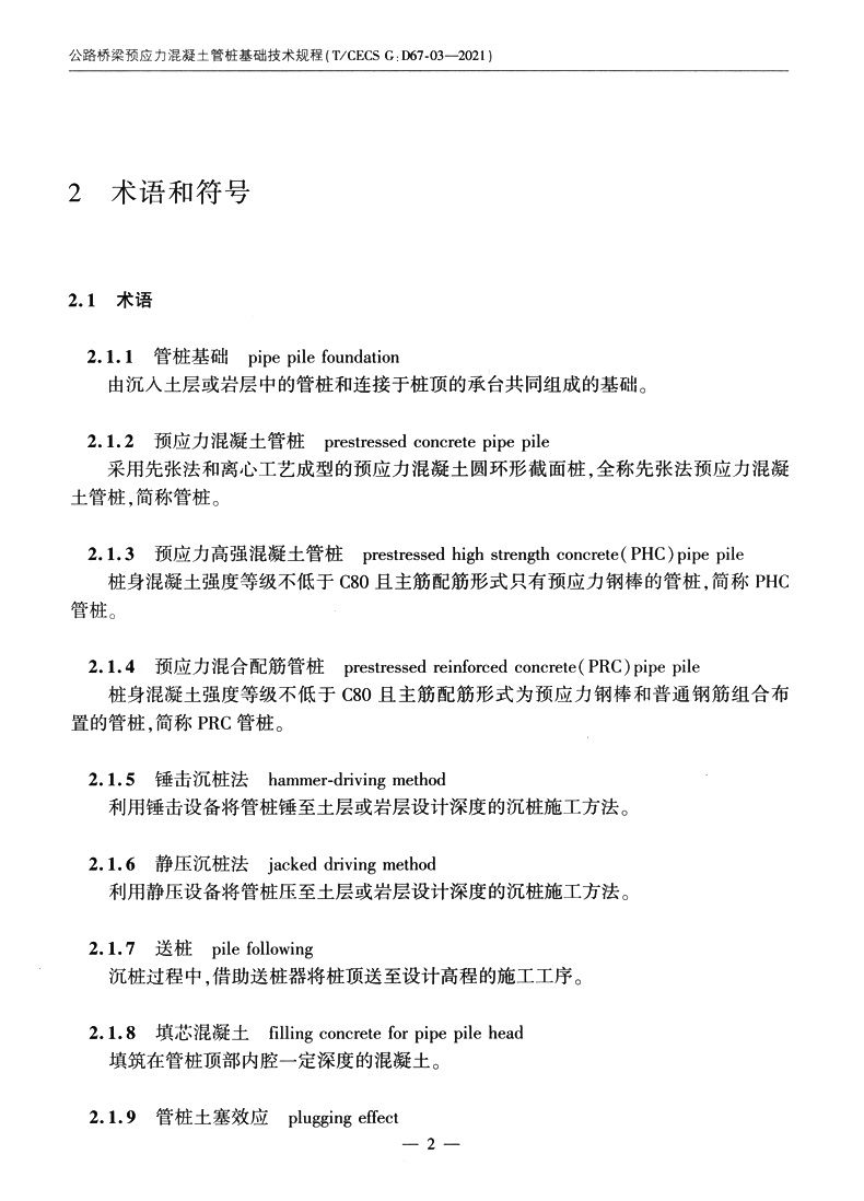 书名:公路桥梁预应力混凝土管桩基础技术规程(T/CECS G:D67-03—2021)