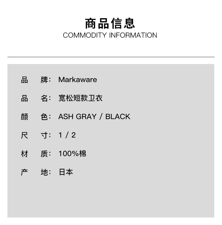 Markaware HUGE SWEAT SHORT经典款超长绒面双层编织宽松短款卫衣