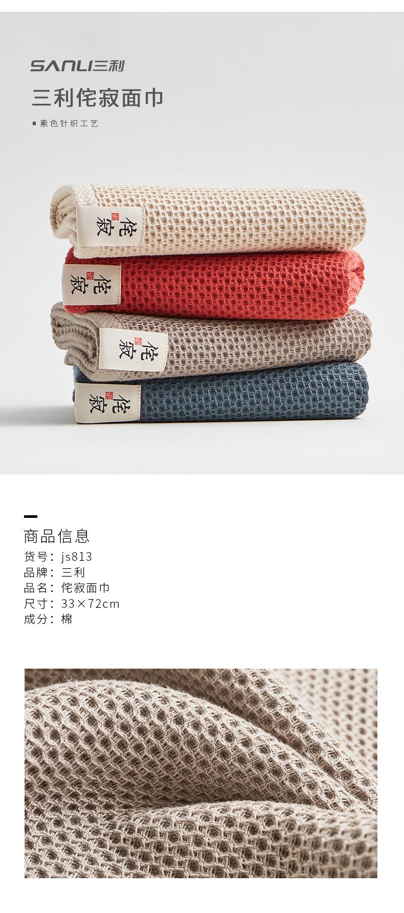 三利毛巾厂家直供夏季新款纯棉毛巾侘寂面巾加大吸水蜂窝毛巾