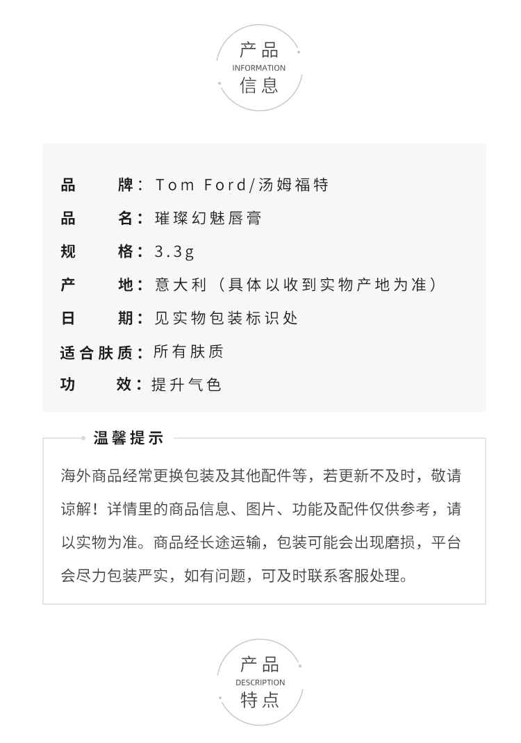 Tom Ford/汤姆福特TF新品细白管口红 滋润唇膏#03 #20 #108【CDF】