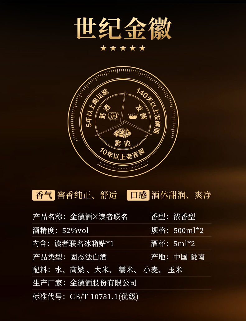 金徽酒×读者联名 52度世纪金徽五星读者联名礼盒