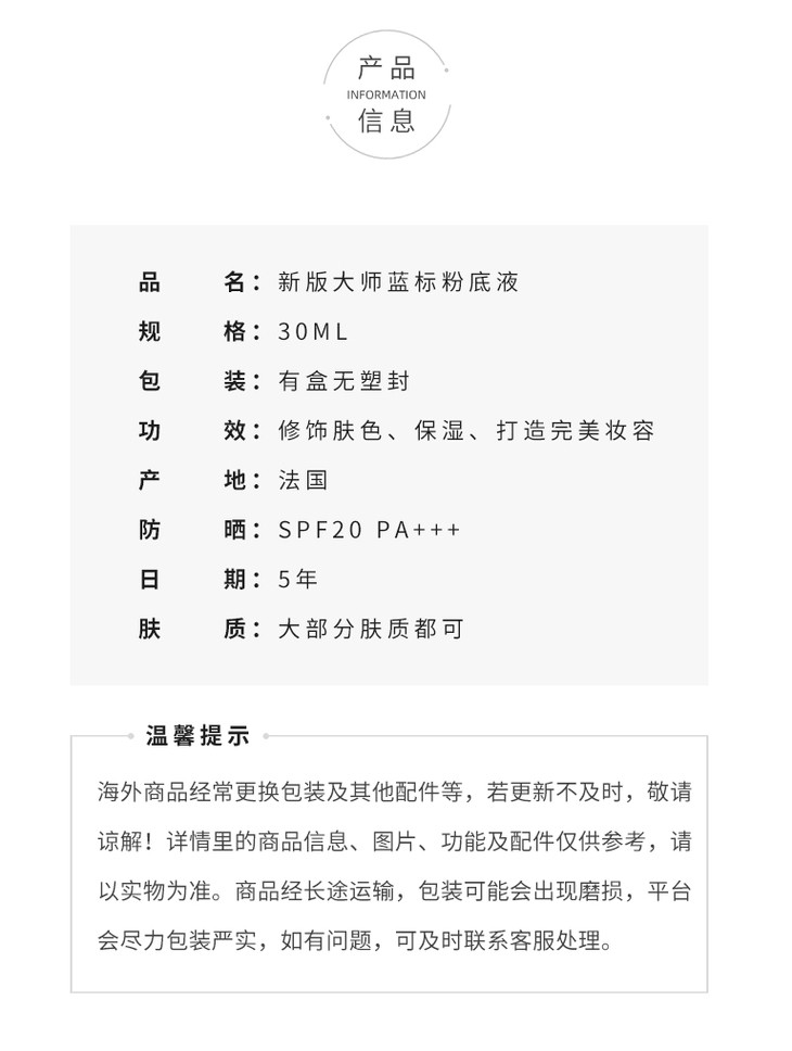新版 阿玛尼新款蓝标大师造型紧颜粉底液 轻薄持久保湿遮瑕 30ML ARMANI/armani
