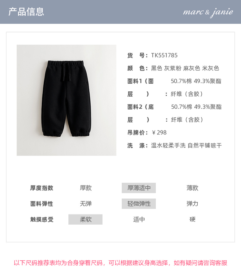 [校园神裤]马克珍妮男女童休闲百搭运动裤儿童裤子秋装新款551785