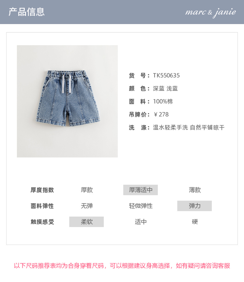 马克珍妮男童时尚百搭牛仔短裤儿童裤子纯棉2025年夏装新款550635