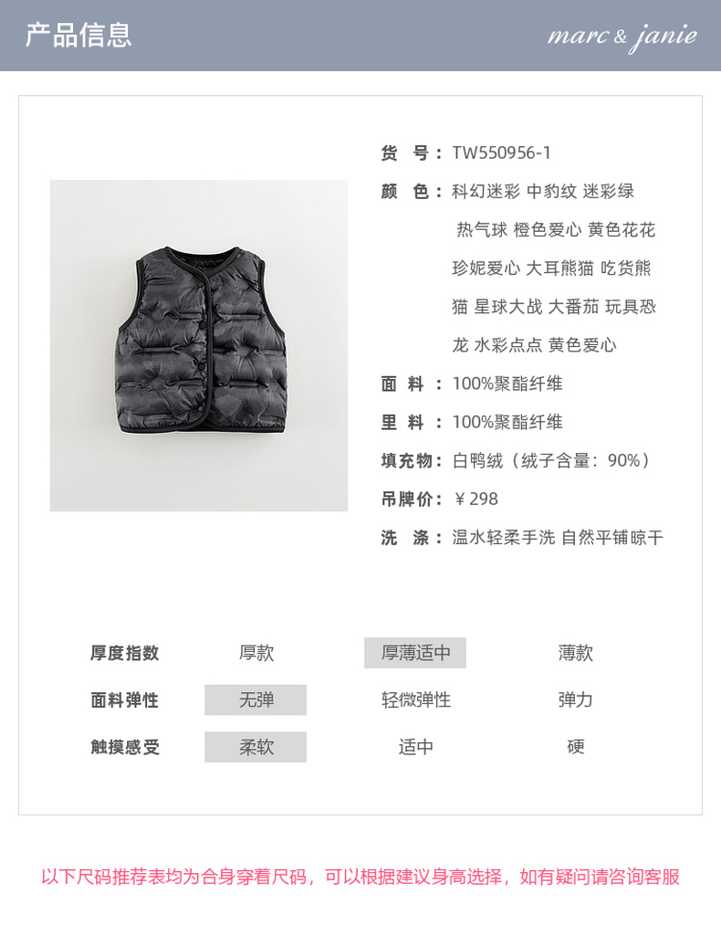 【无缝羽绒】马克珍妮男女童多彩卡通羽绒服马甲秋冬新款550956