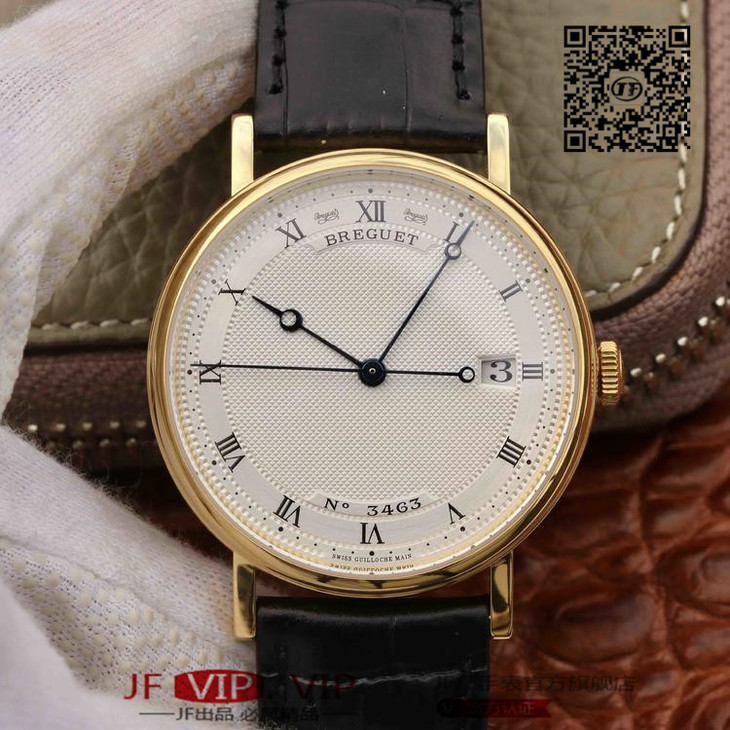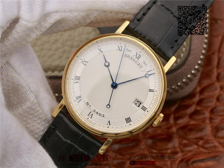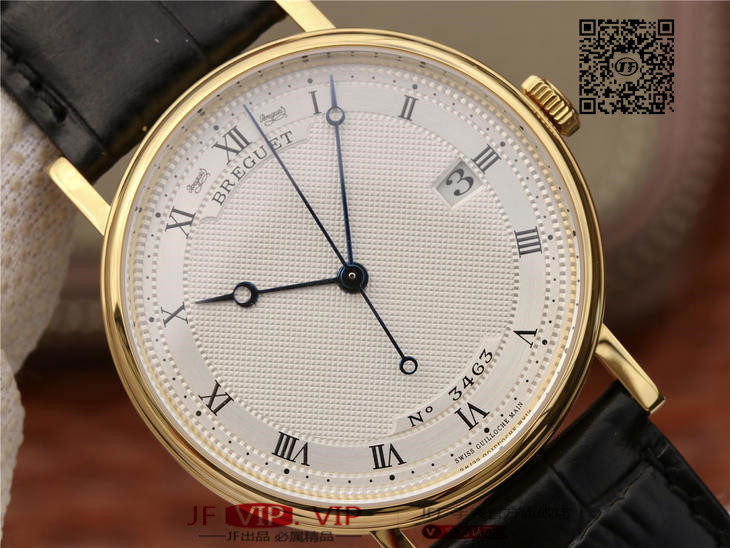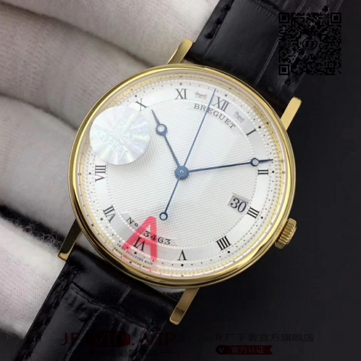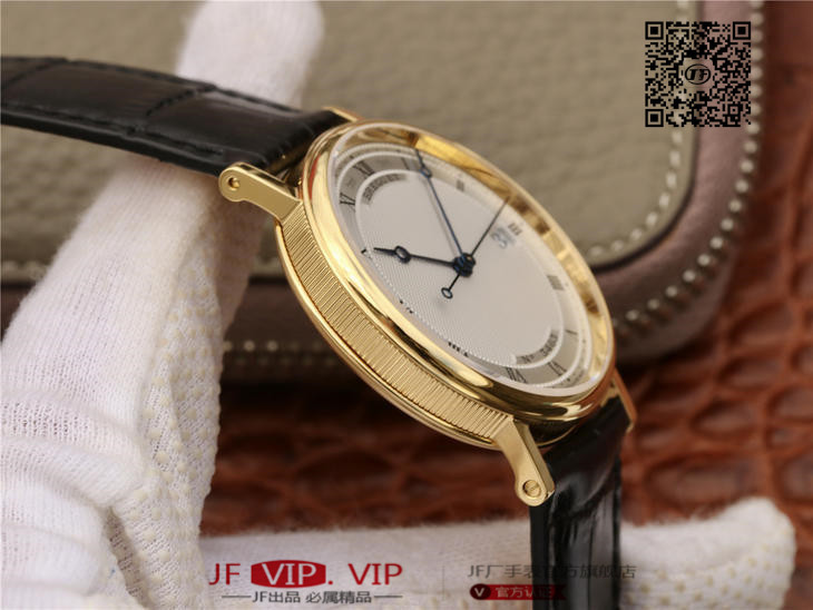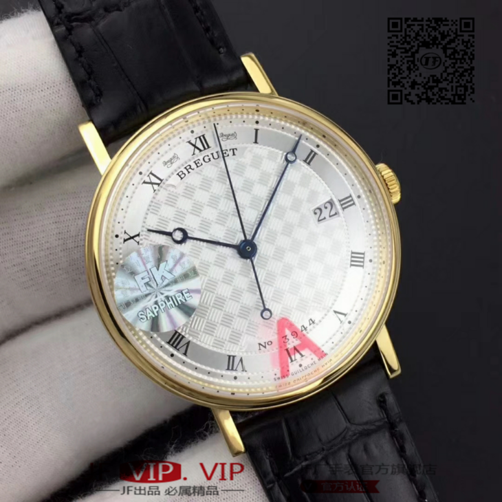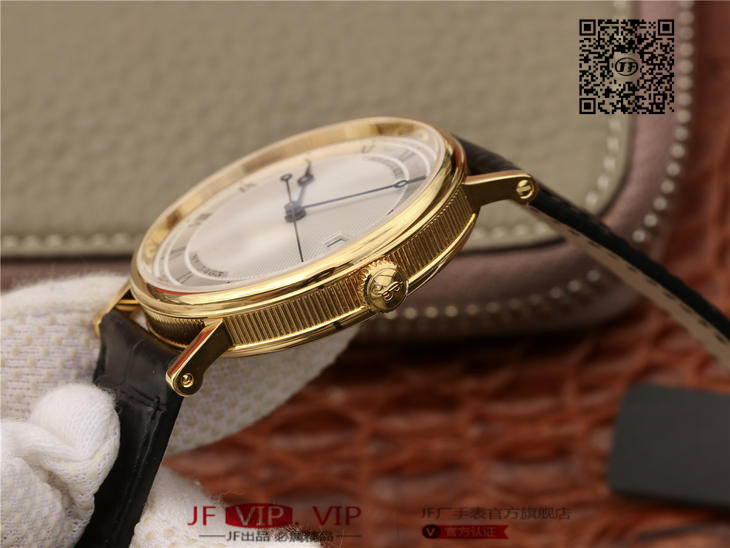 FK宝玑经典系列zhongji版,辨识度高,正装表不二之选。完美修正内容:1、表壳厚度再次优化,薄到完美匹配正品,达到9毫米,复刻里的薄巅峰;2、蓝宝石玻璃是全网上一家能做出“真正双弧形”玻璃:全网都是平片玻璃,注:(正品是双弧形)3、指针延续烧钢工艺,品级再次提高,成本倍增,价格不变。;4、表带材料升级为鳄鱼皮质,LOGO印花完美同步。5、机芯采用日本进口的9015,洗花工艺再度提升,纹理更加细腻,视觉感官更加细致