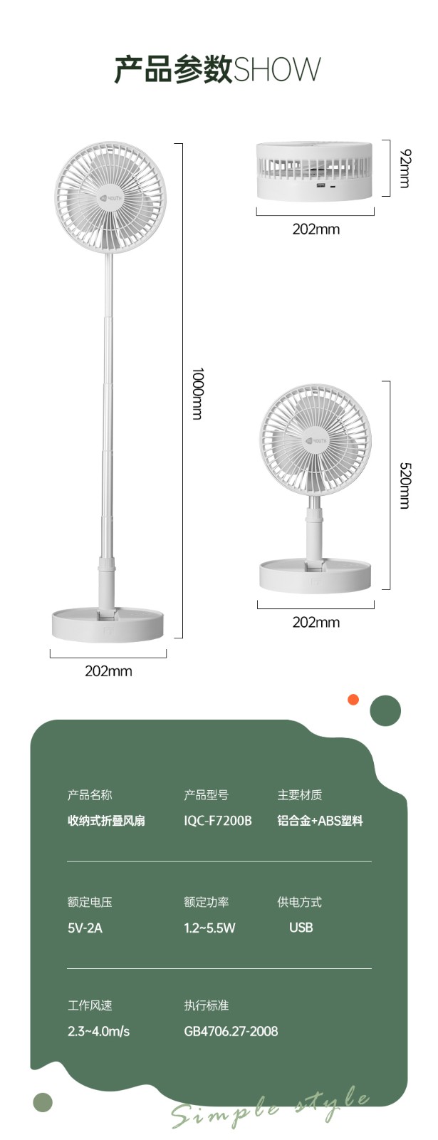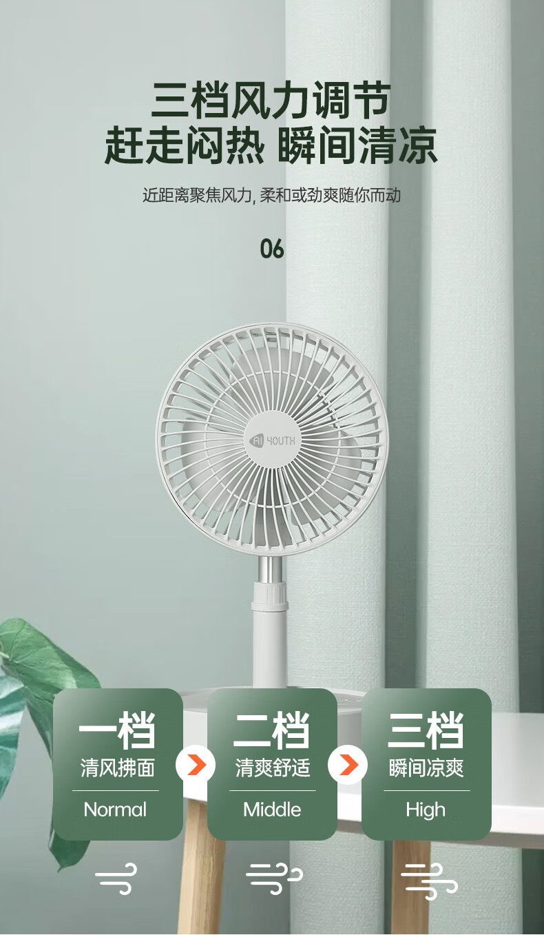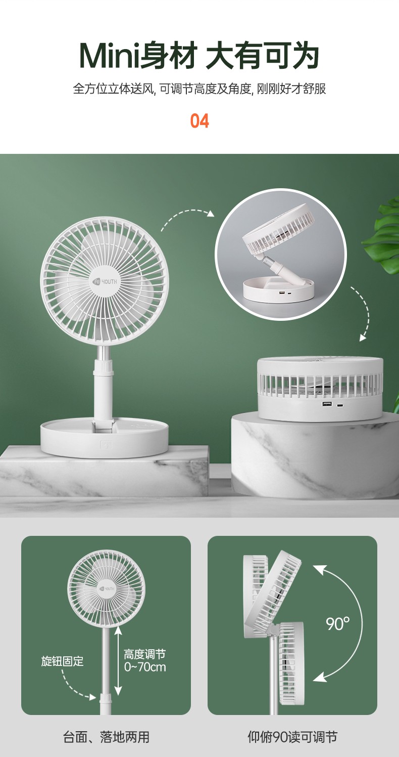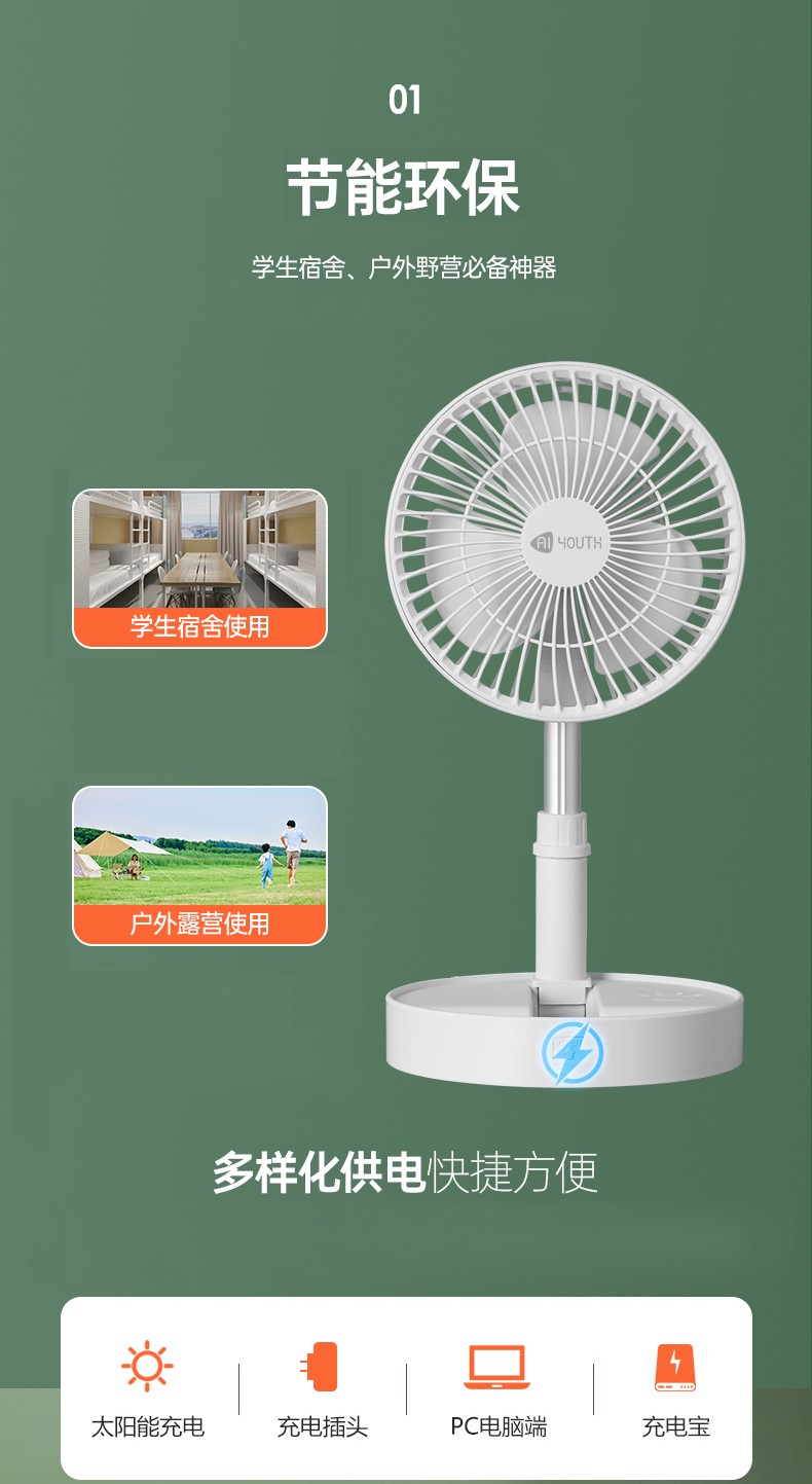 艾青春(AIYOUTH) 学生宿舍便携式风扇USB可充电随身携带大风力家用桌面风扇IQC-F7200B