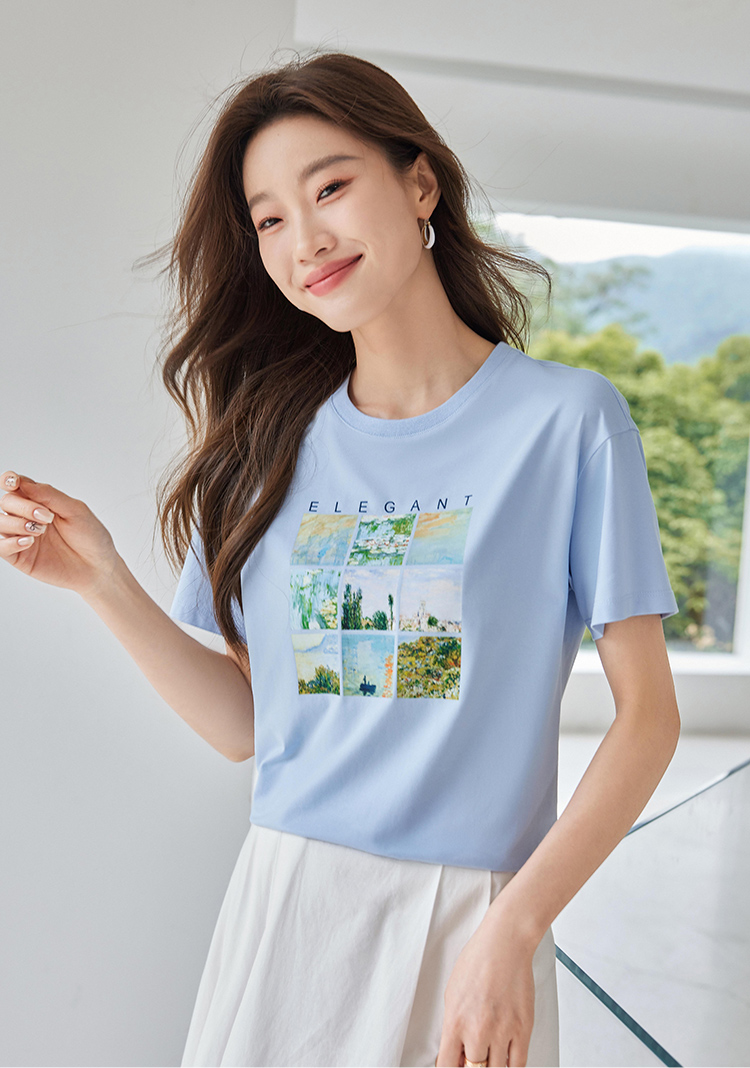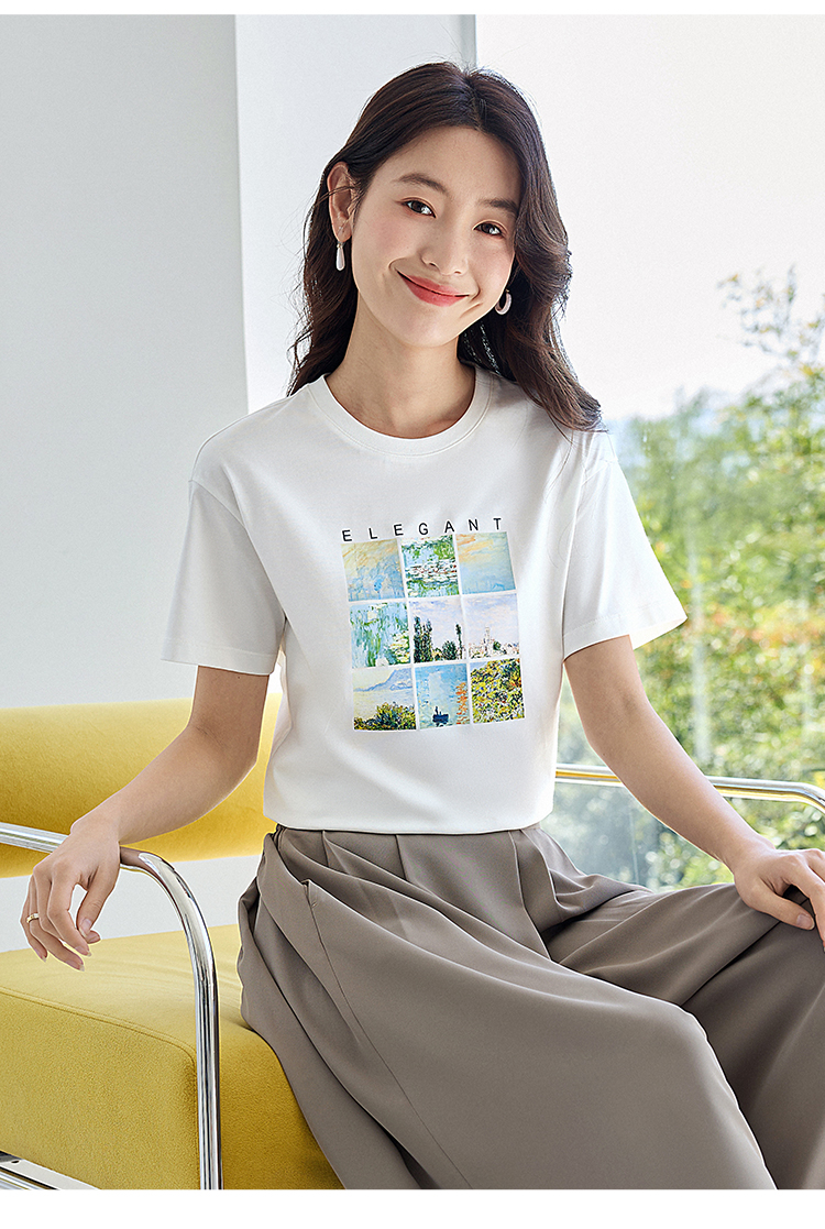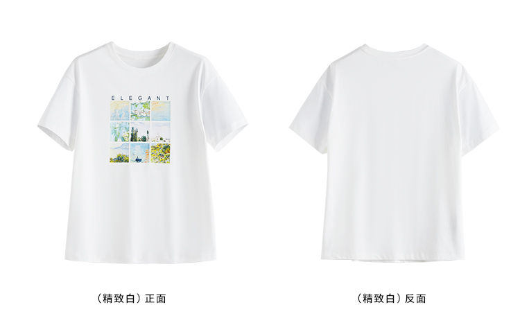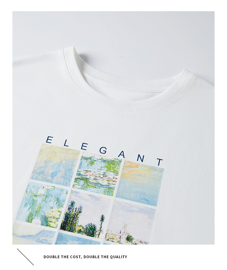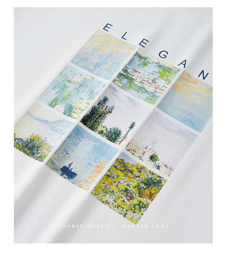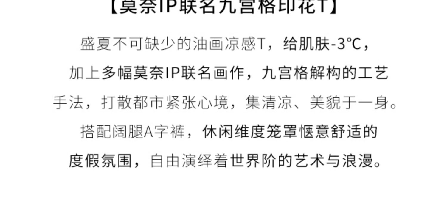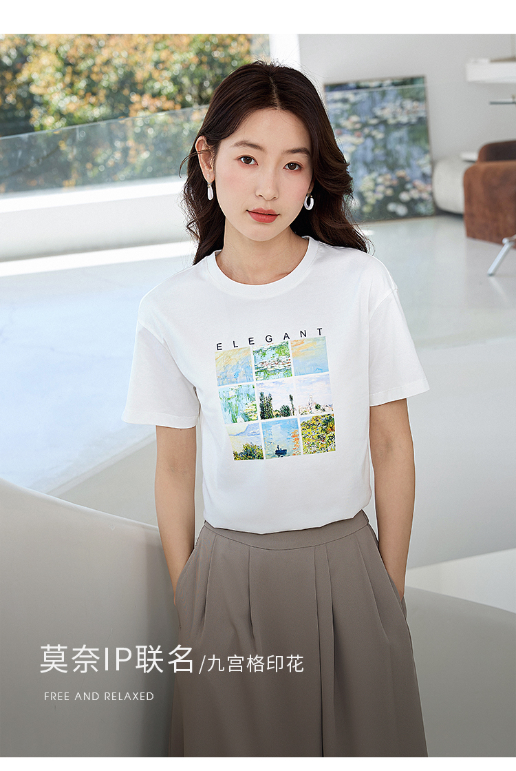 【五折购】莫奈联名熙世界油画印花白色T恤夏天新款百搭短袖凉感上衣