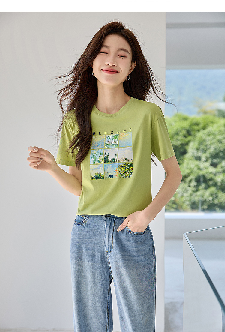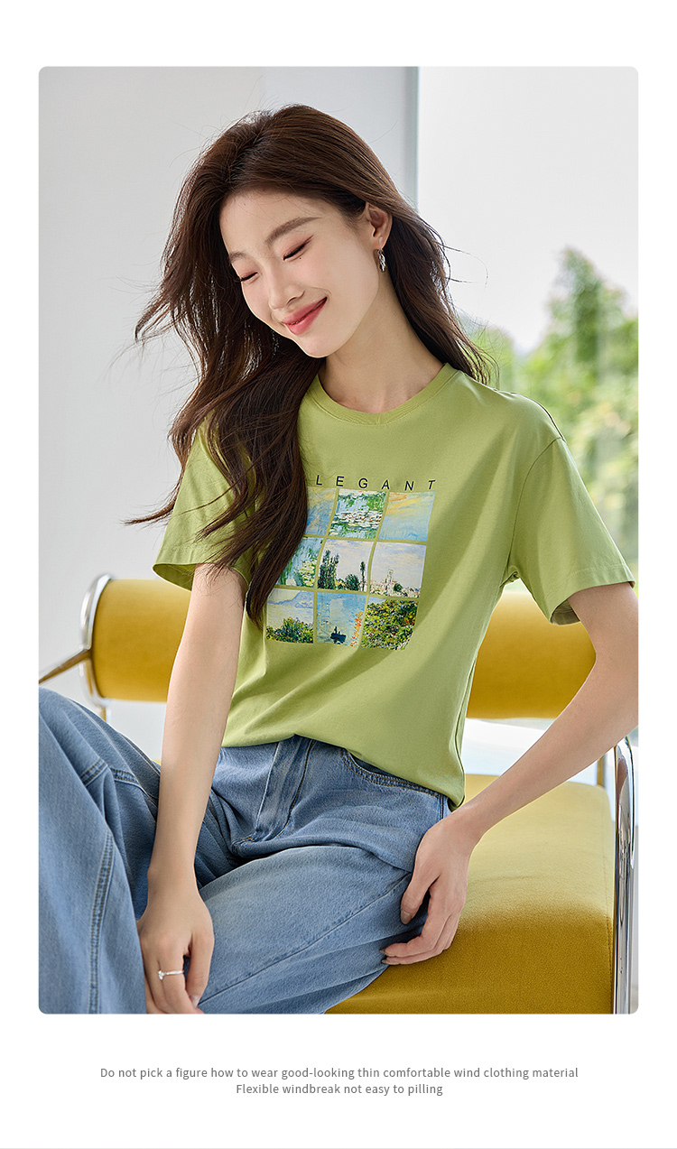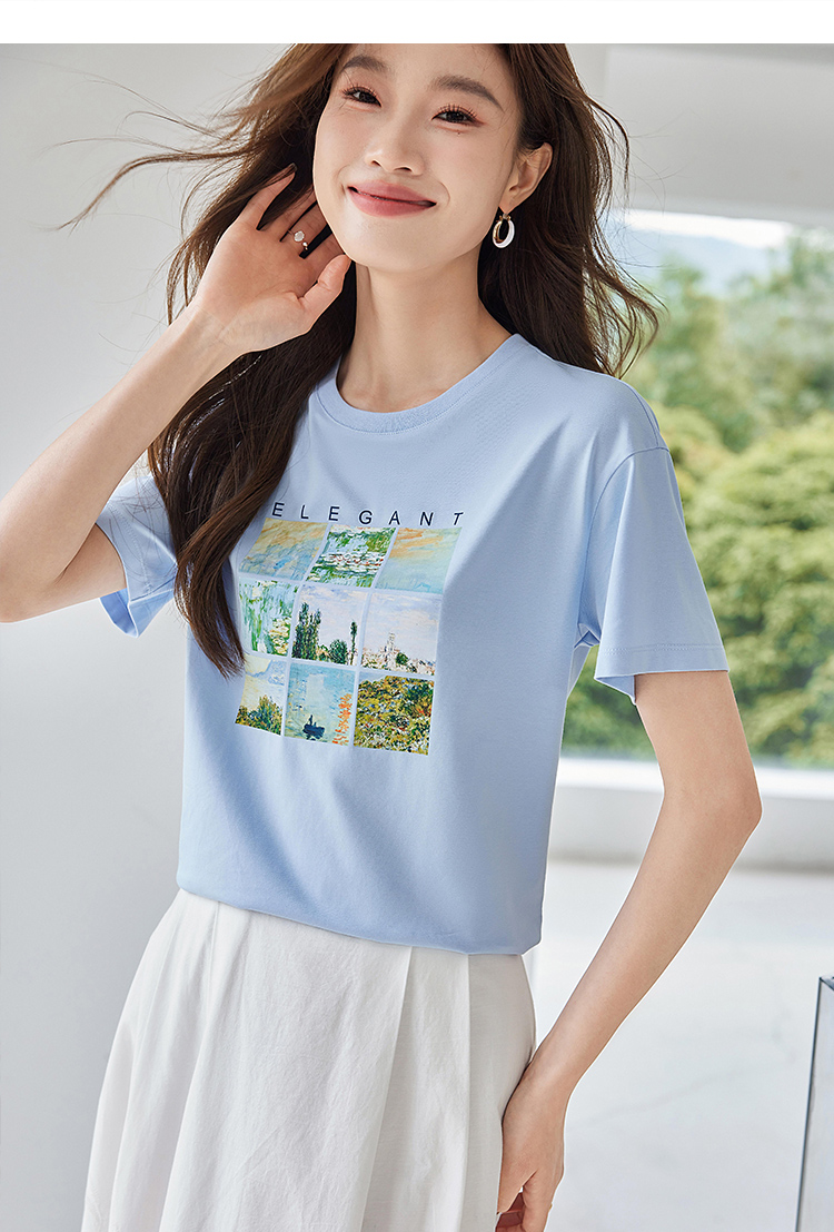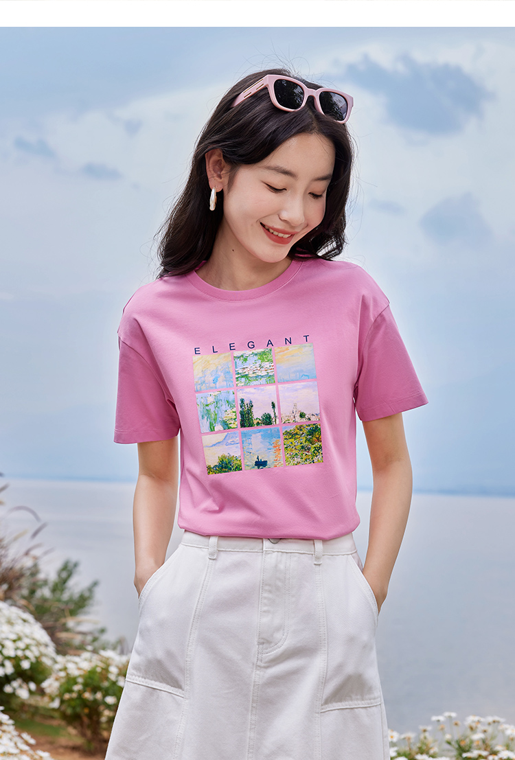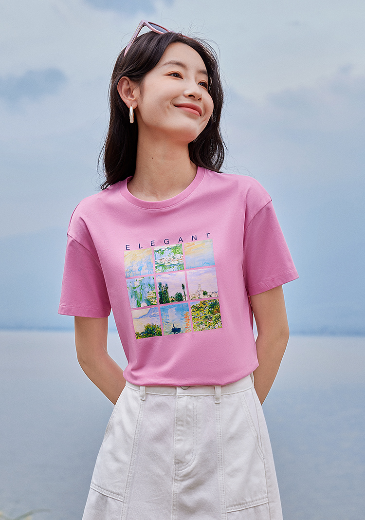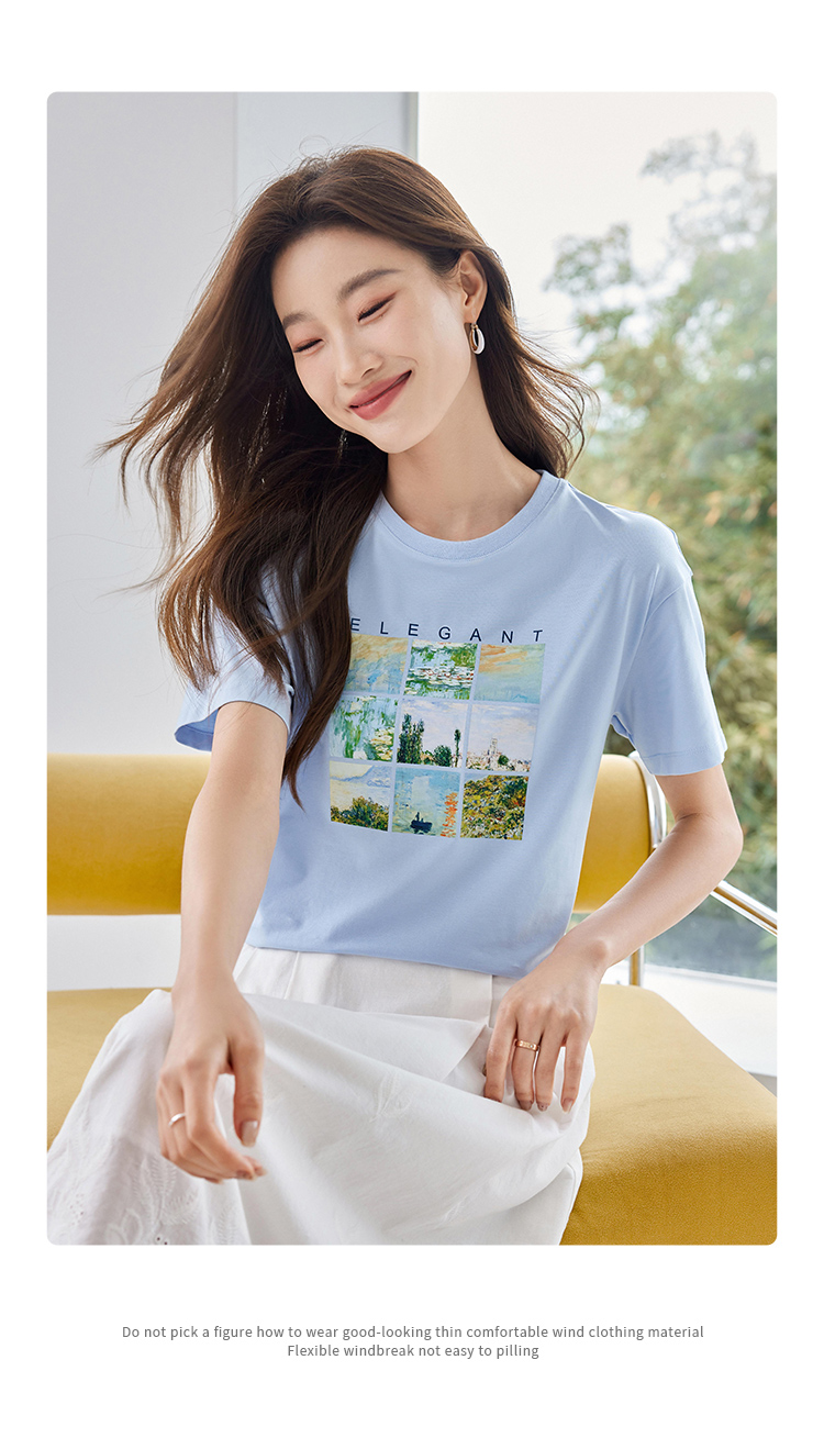 【五折购】莫奈联名熙世界油画印花白色T恤夏天新款百搭短袖凉感上衣