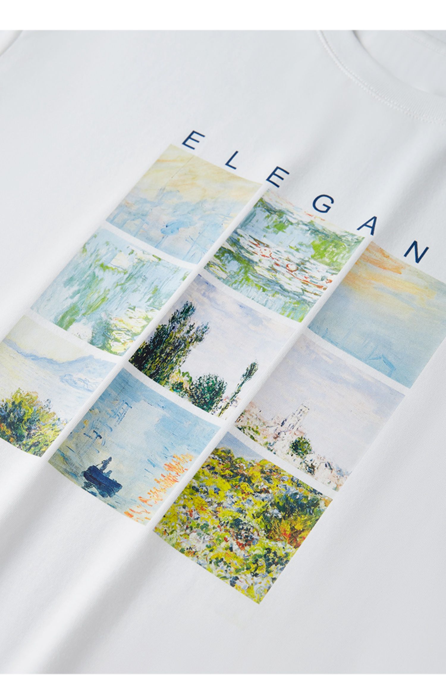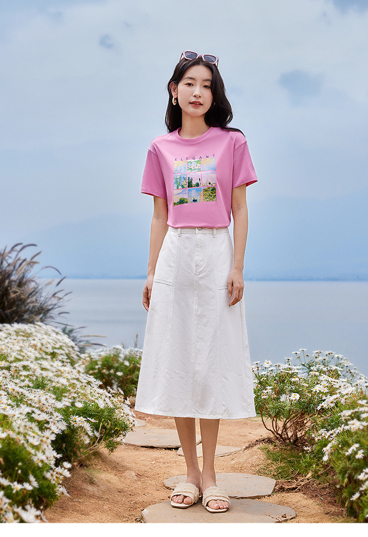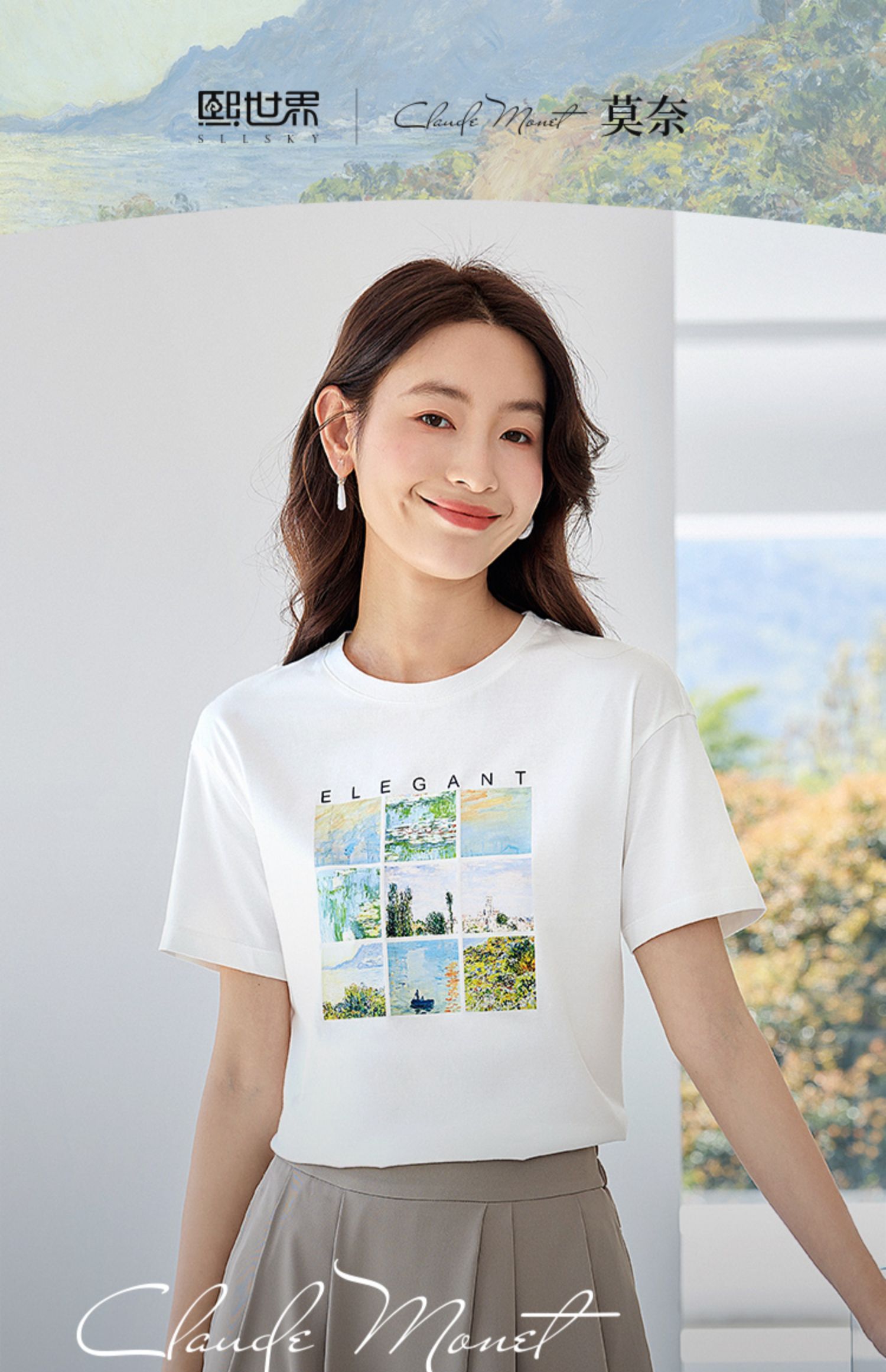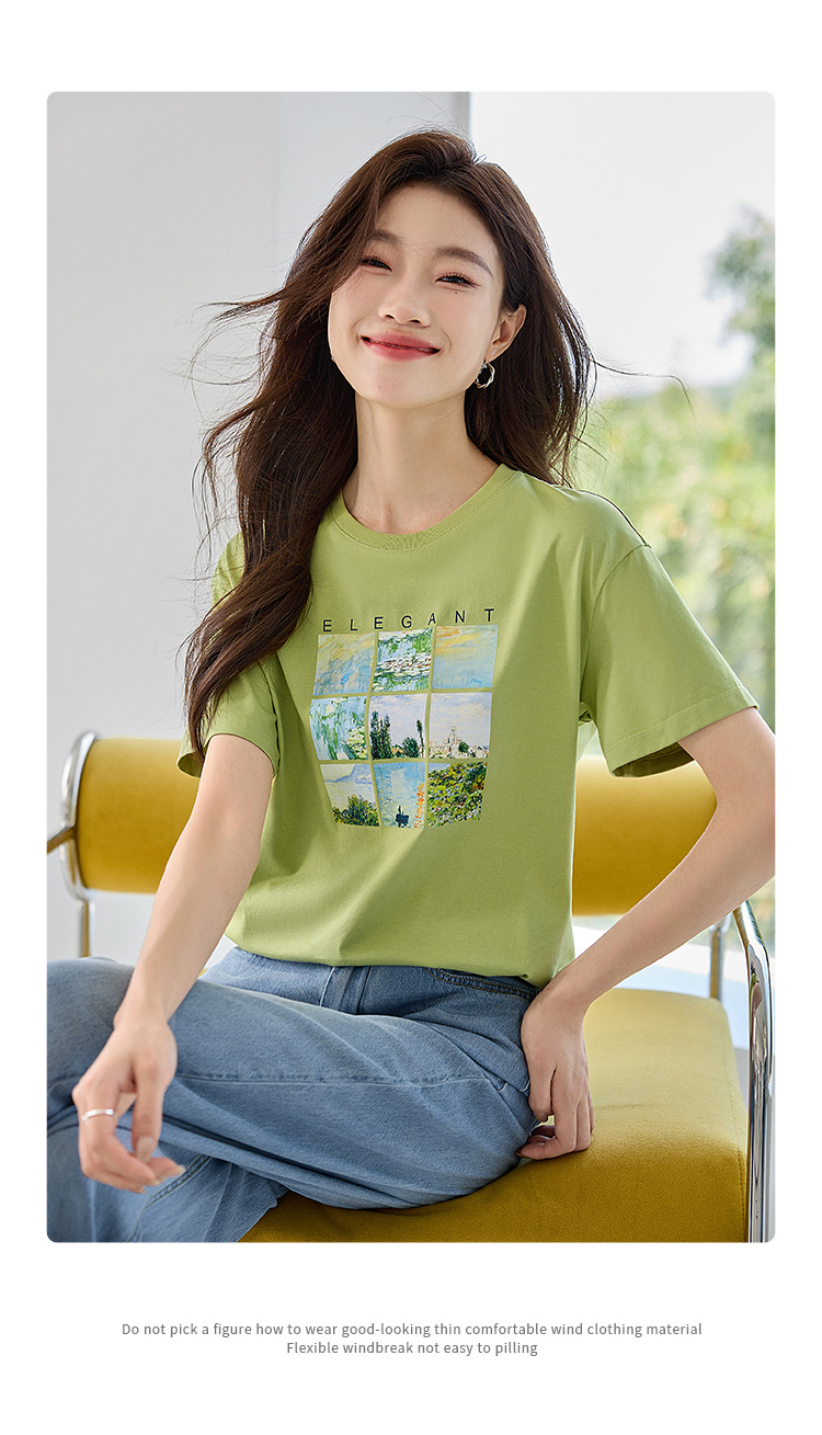 【五折购】莫奈联名熙世界油画印花白色T恤夏天新款百搭短袖凉感上衣