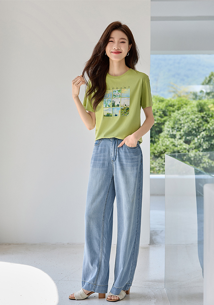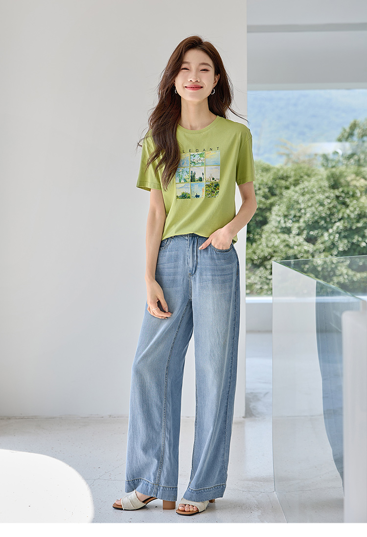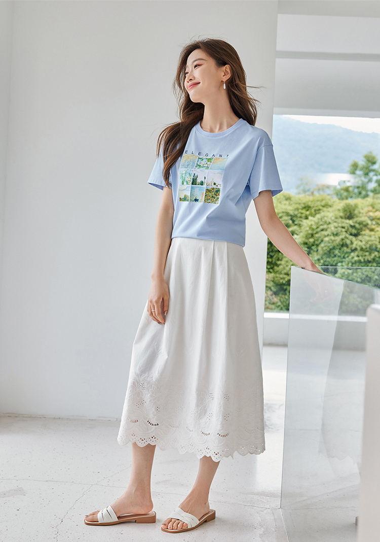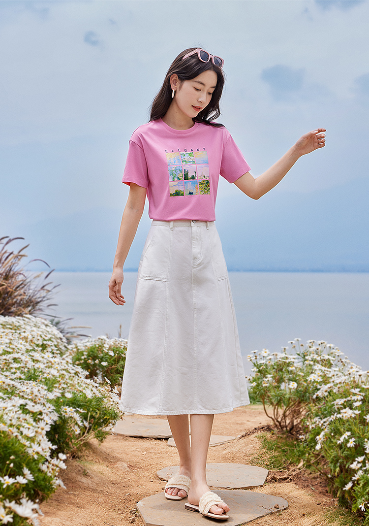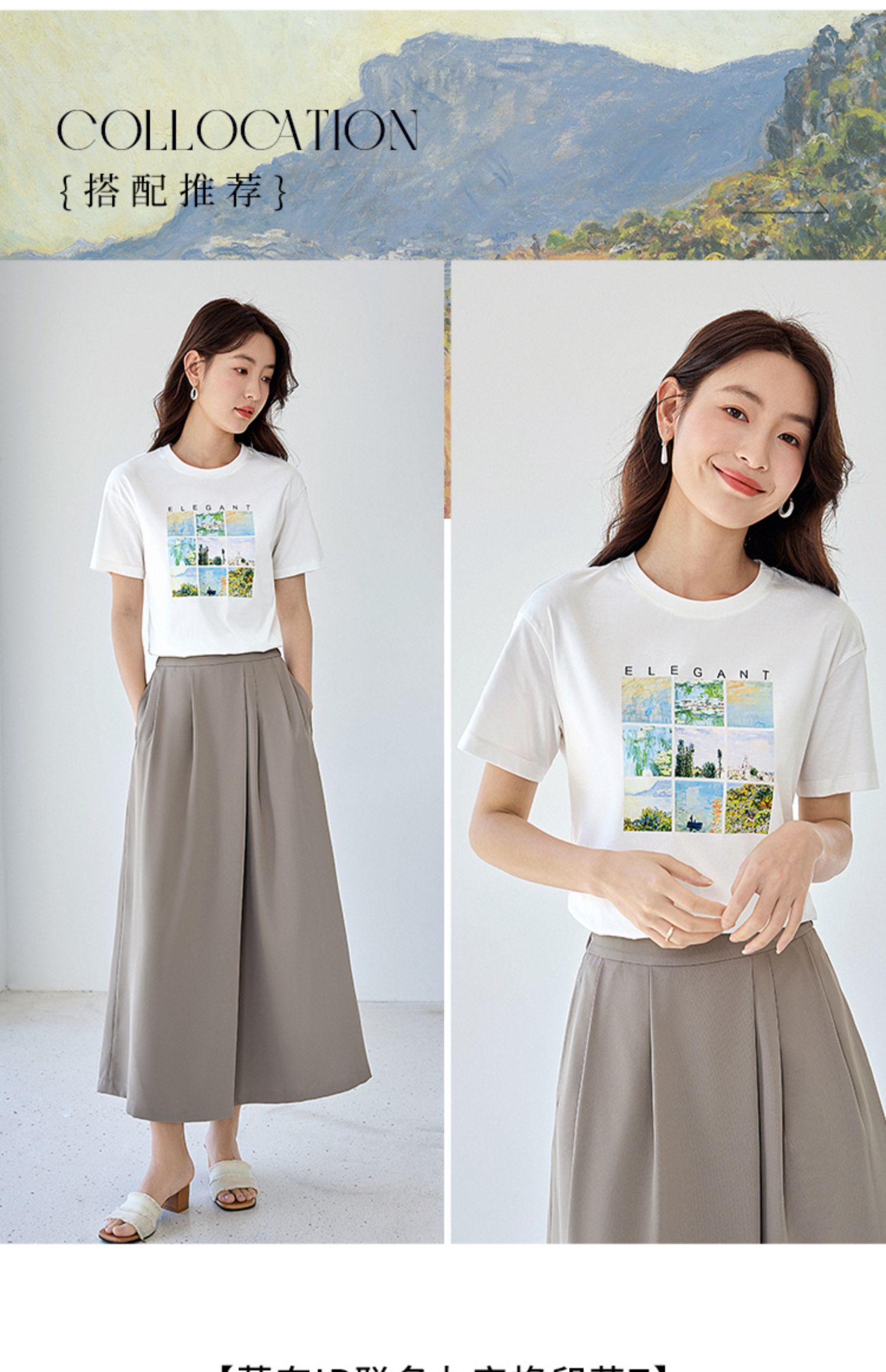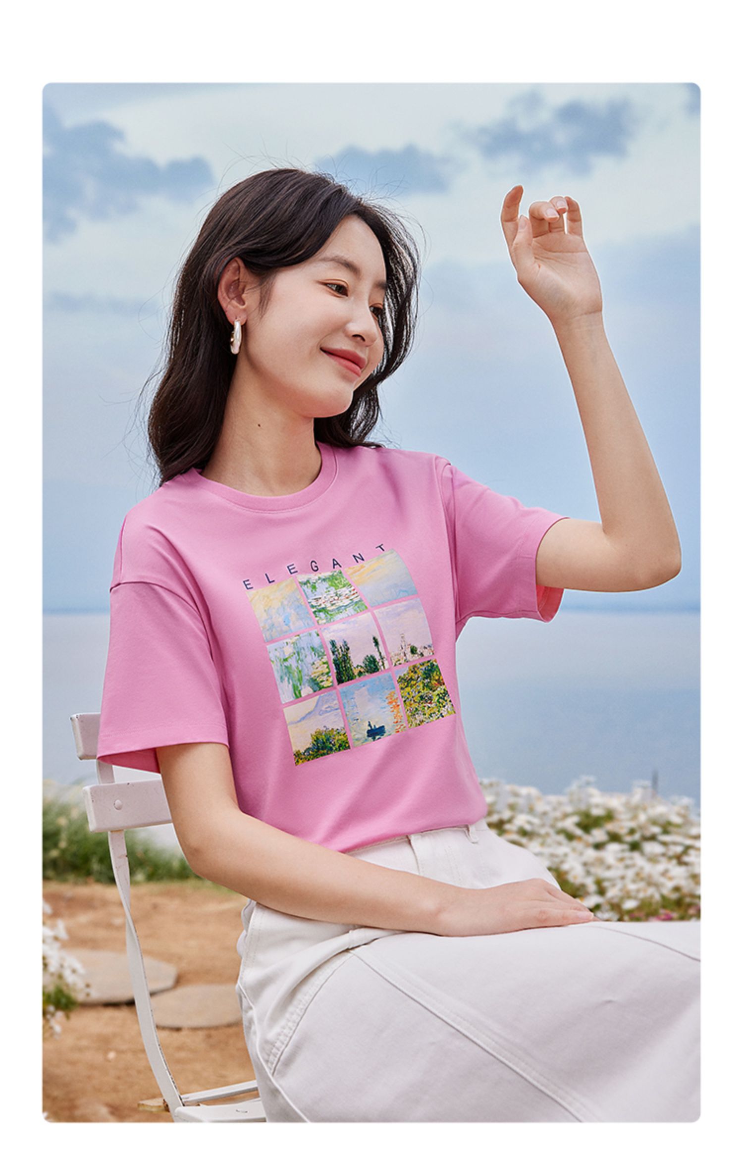 【五折购】莫奈联名熙世界油画印花白色T恤夏天新款百搭短袖凉感上衣