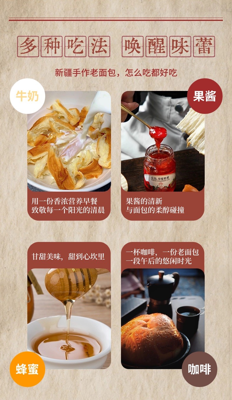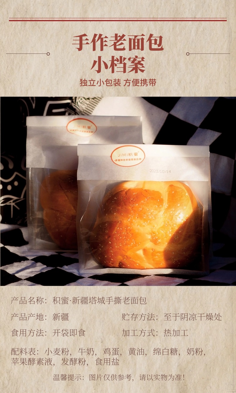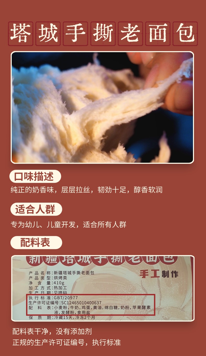 【双仓发货#超筋道实惠】新疆塔城手撕老面包410g*2