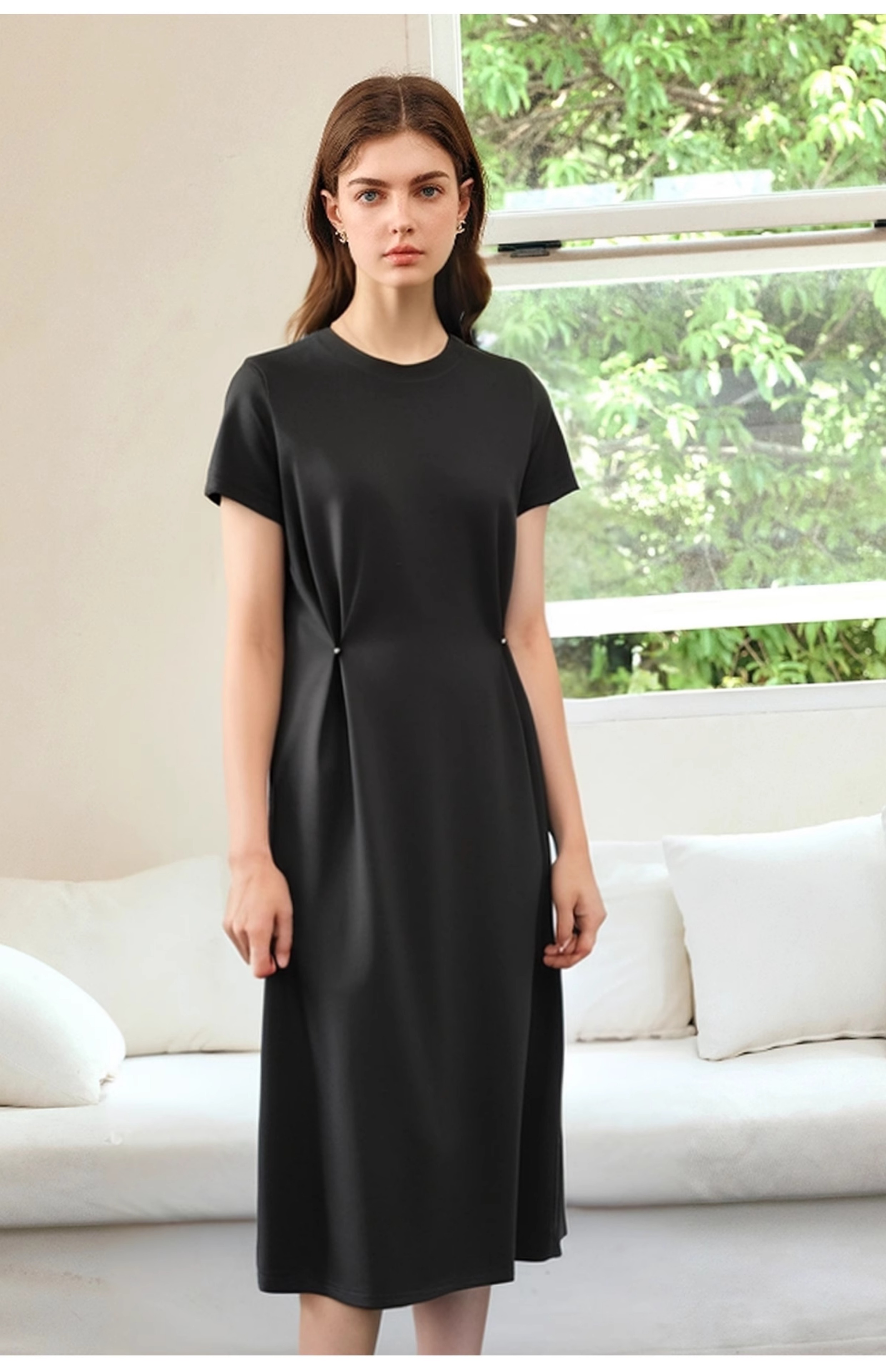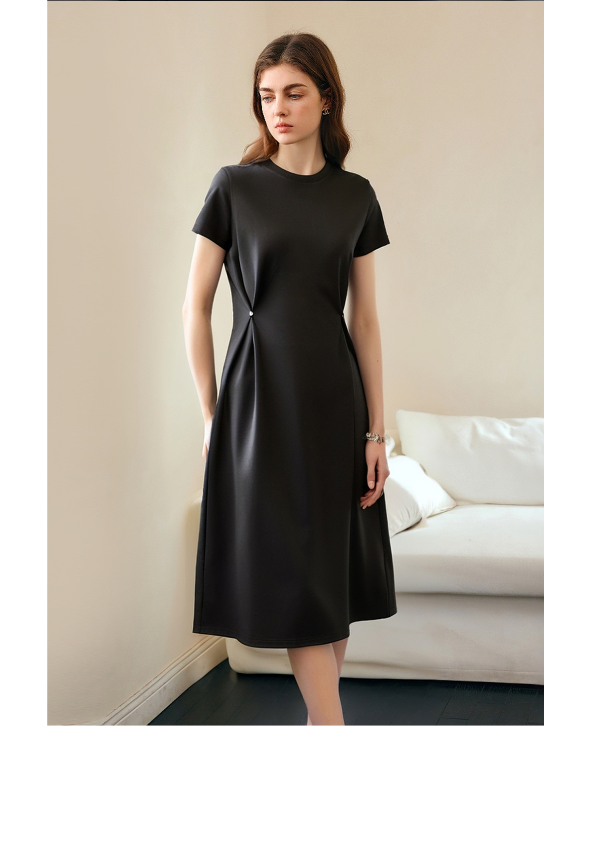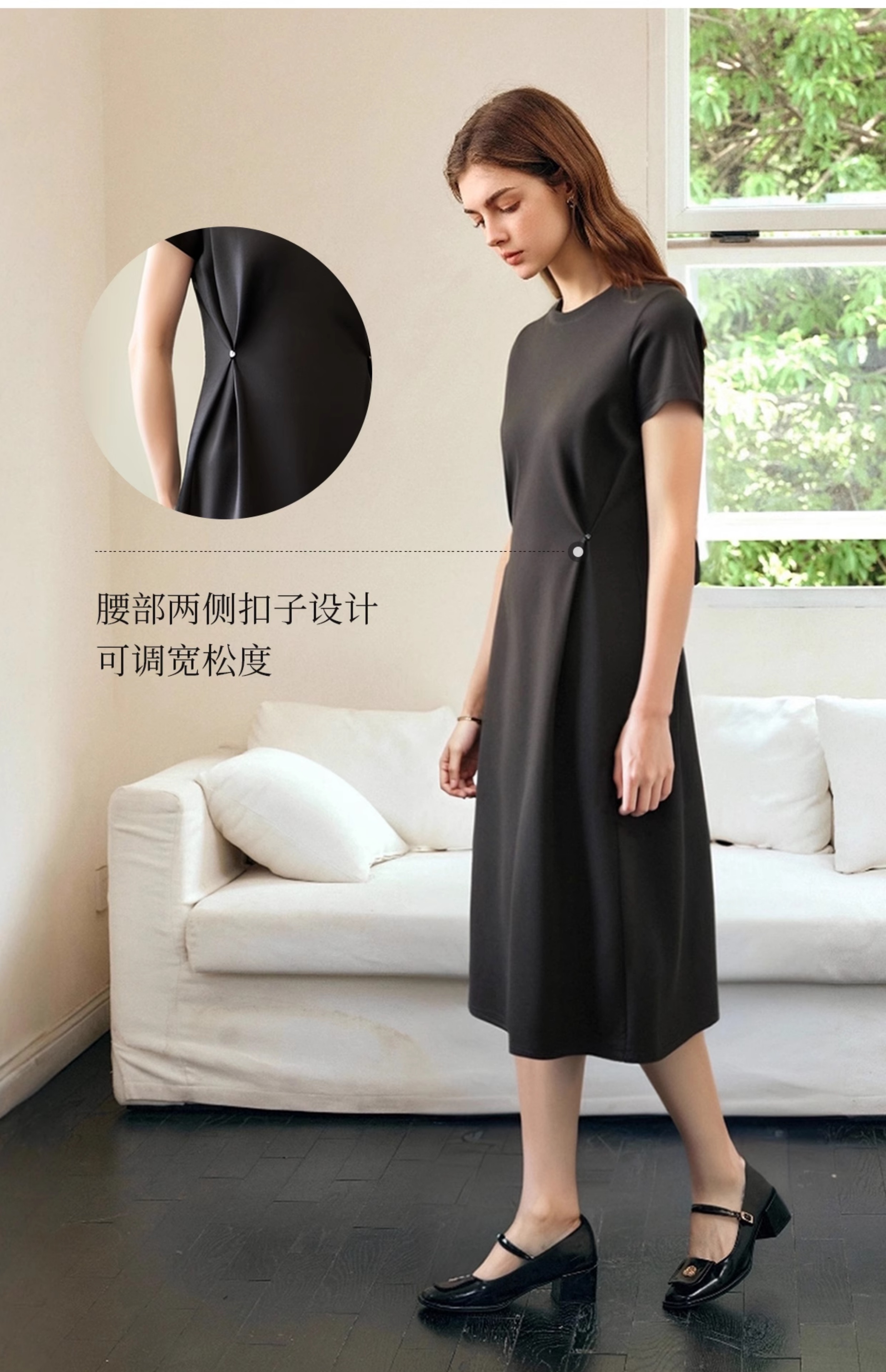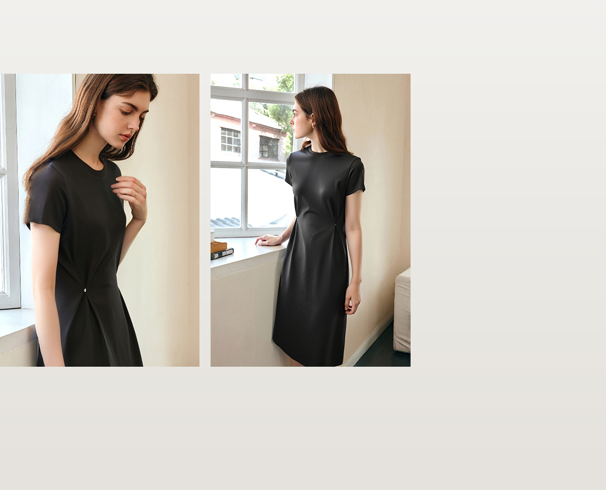 OLrain欧芮儿2025年夏季新款韩系短袖纯色百搭套头休闲圆领连衣裙