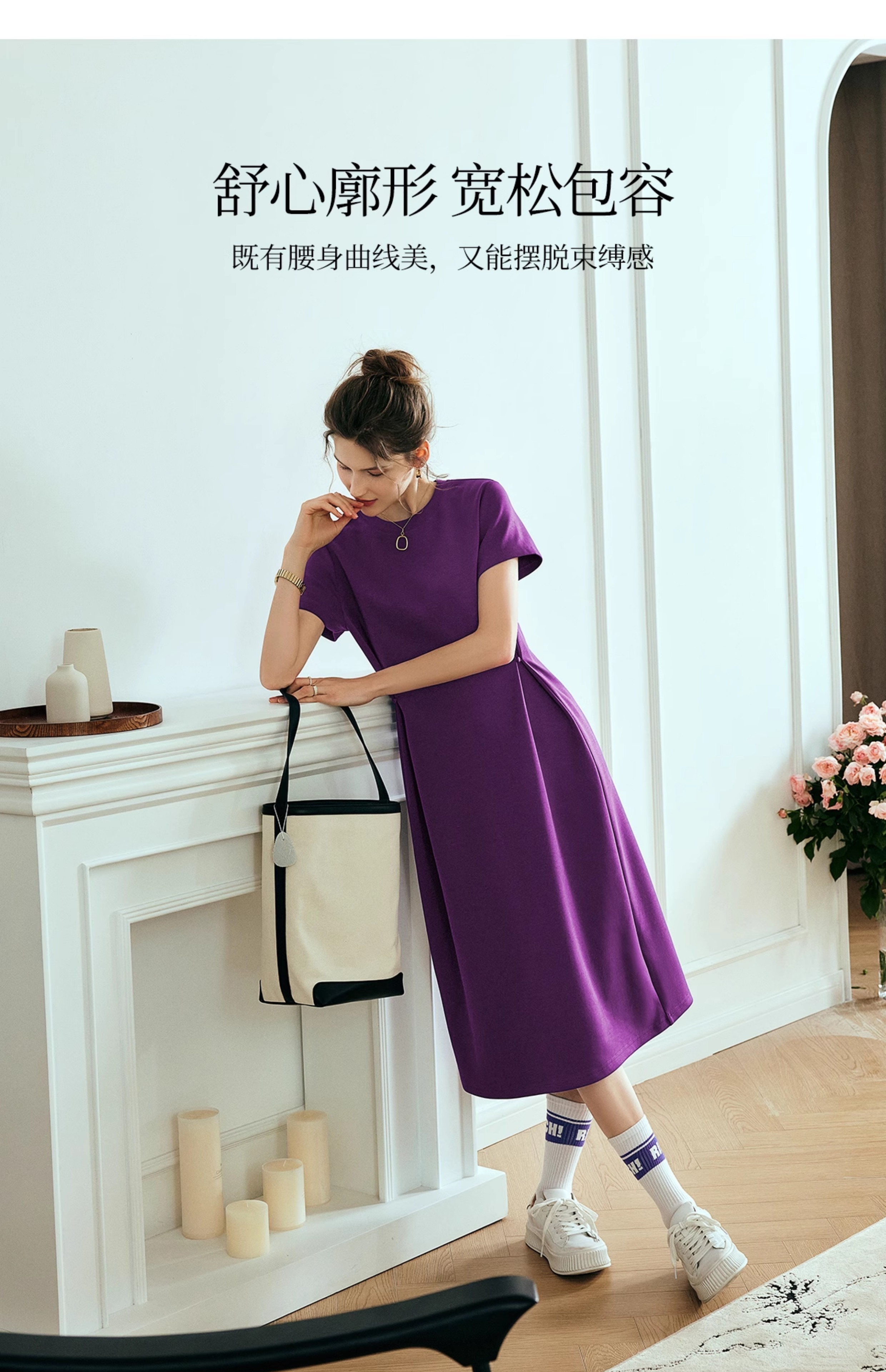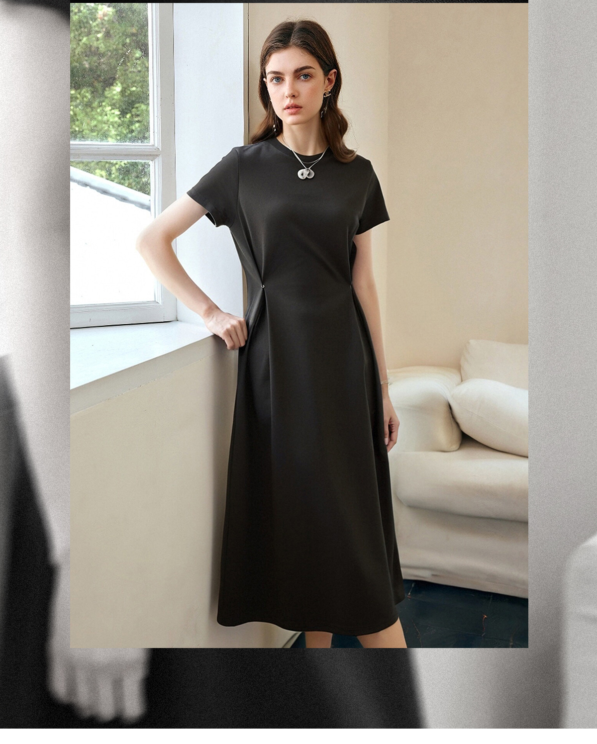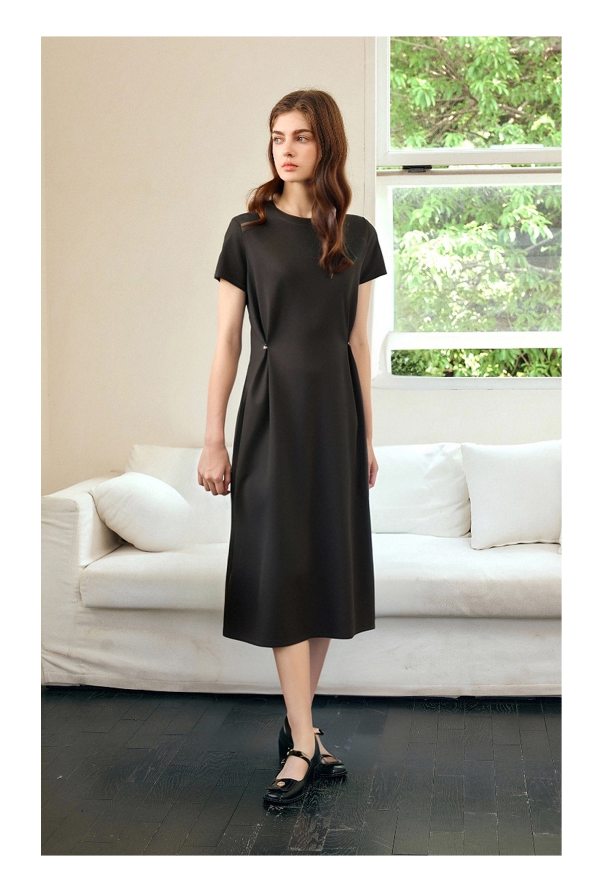 OLrain欧芮儿2025年夏季新款韩系短袖纯色百搭套头休闲圆领连衣裙