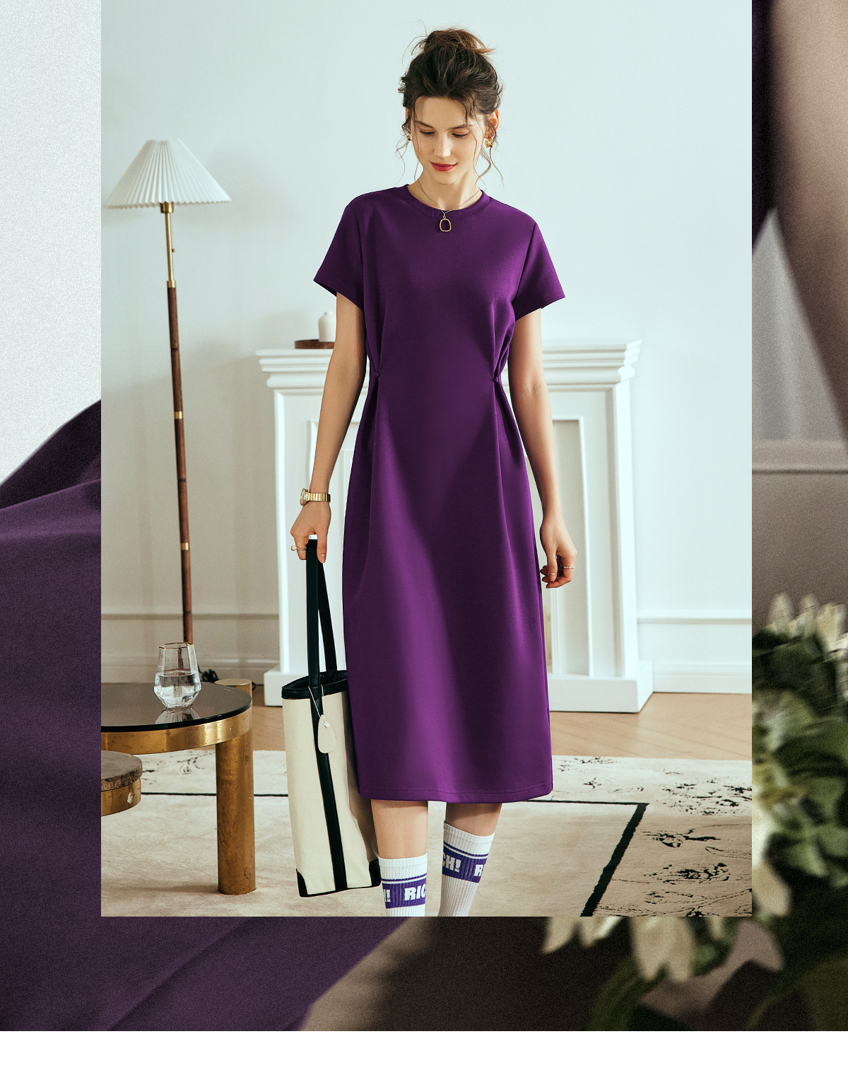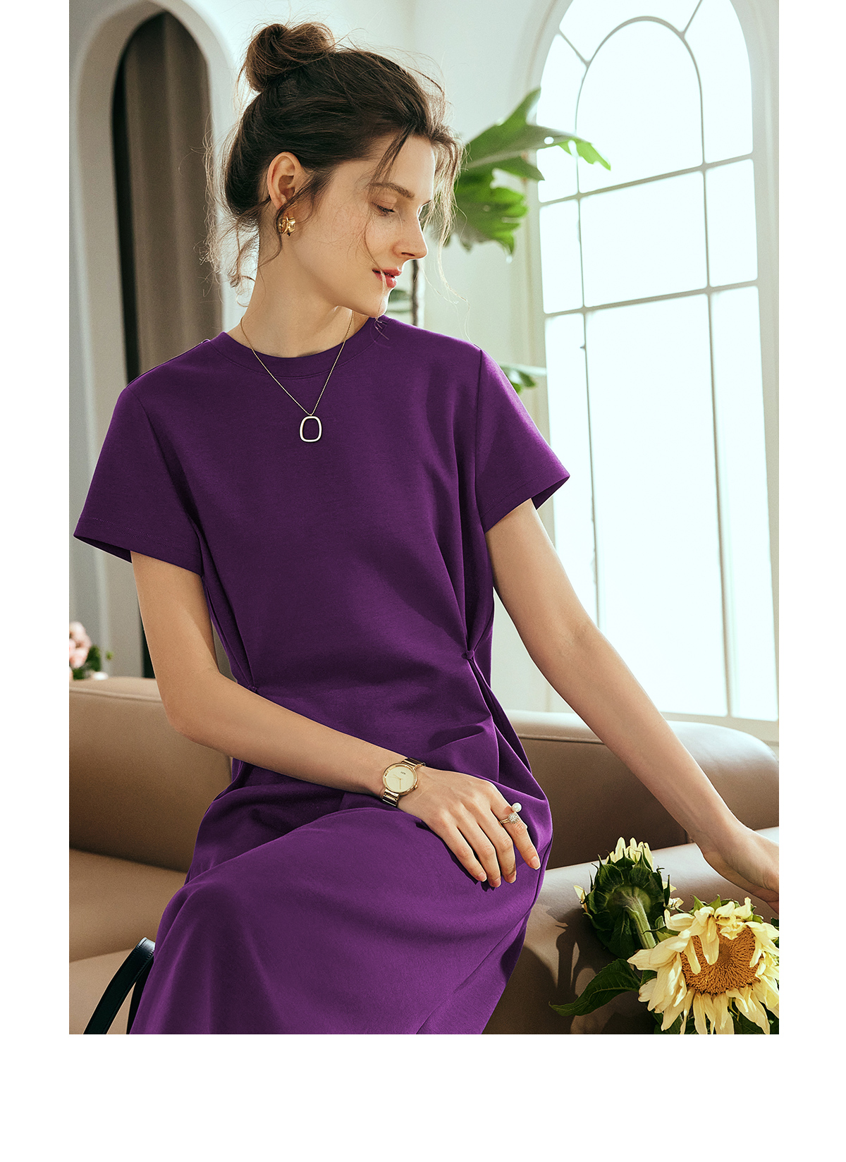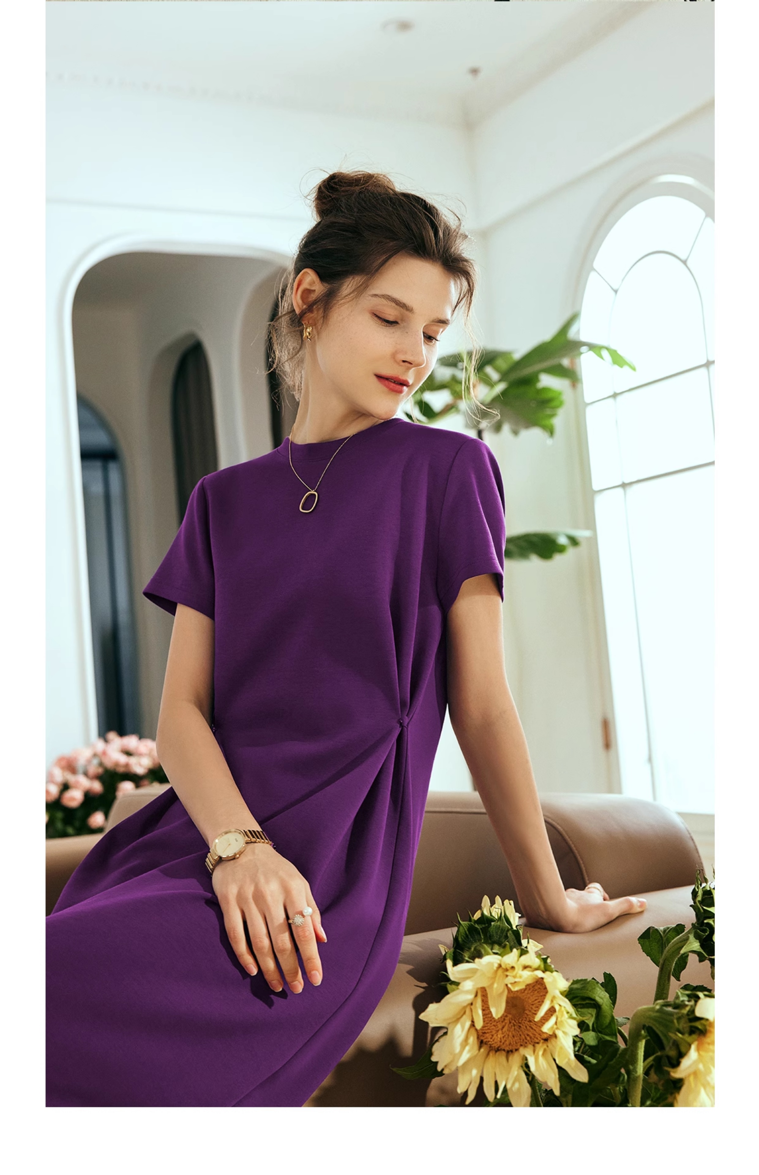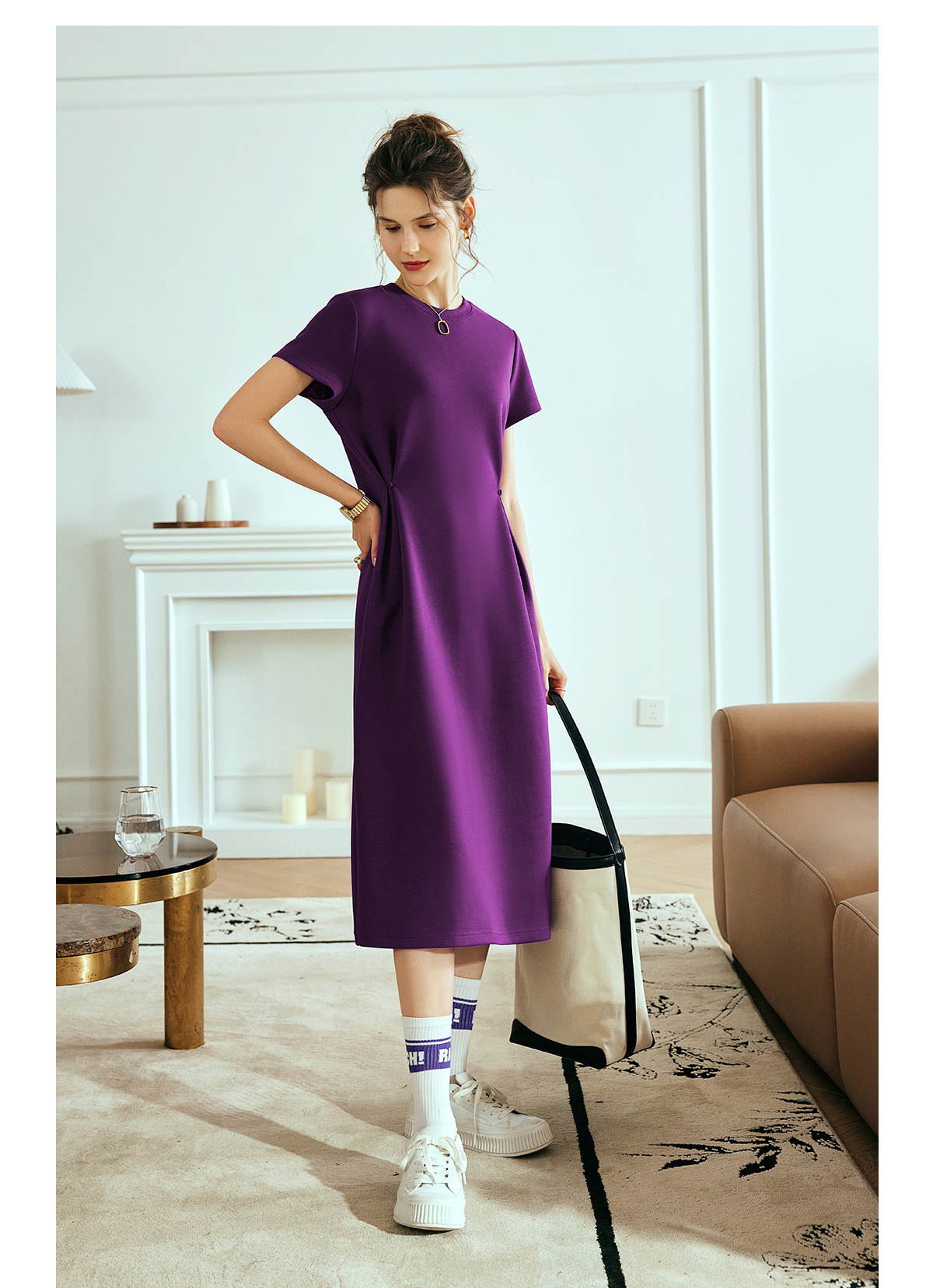 OLrain欧芮儿2025年夏季新款韩系短袖纯色百搭套头休闲圆领连衣裙