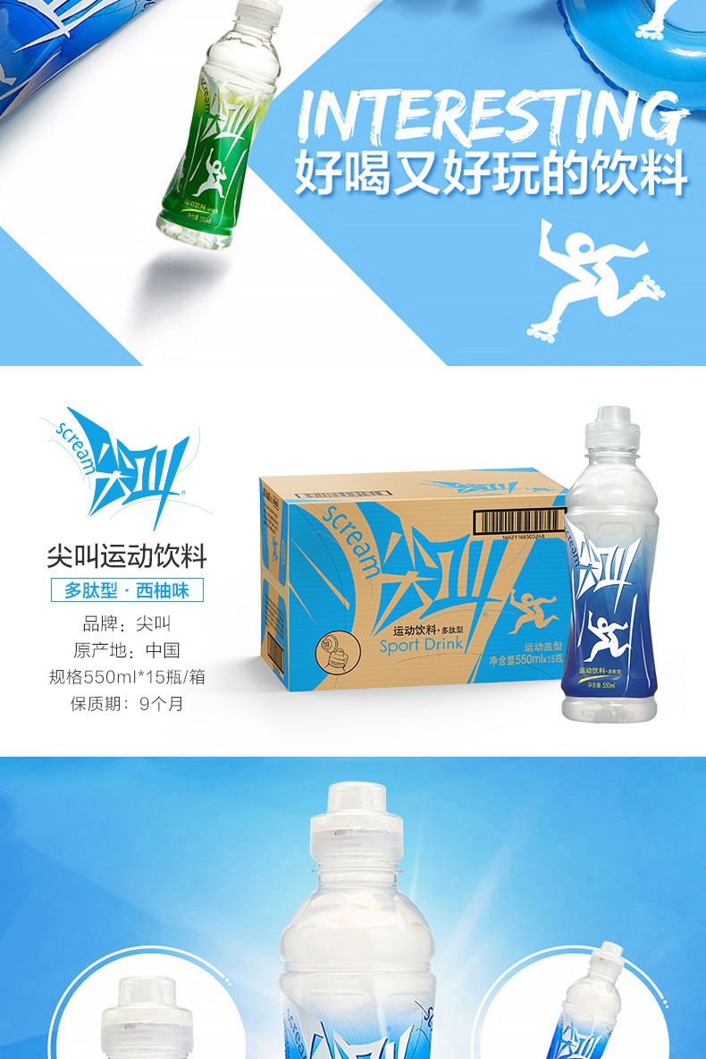 农夫山泉 尖叫运动饮料 多肽型550ml*15瓶 整箱装