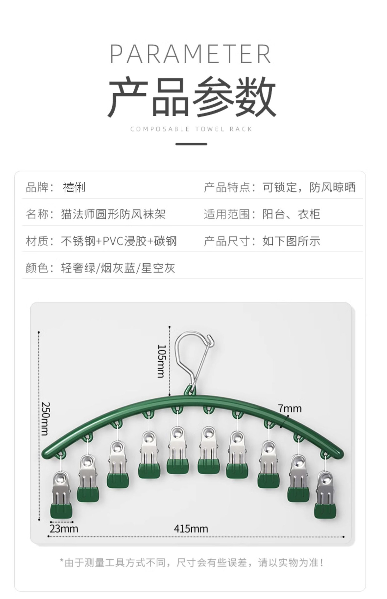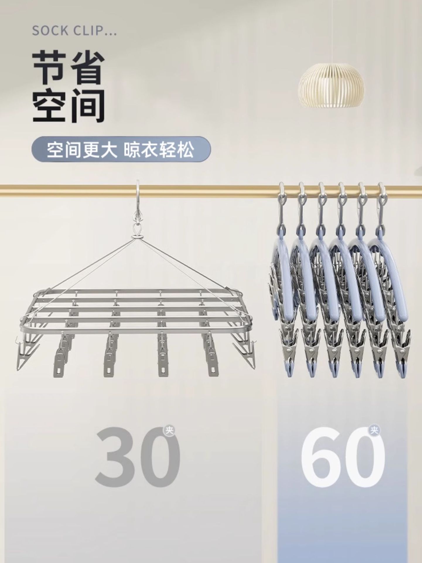 「买1送1!19.9到手两支」家用不锈钢防风夹子 晾晒袜子多功能收纳整理无痕内衣弧形浸塑裤夹
